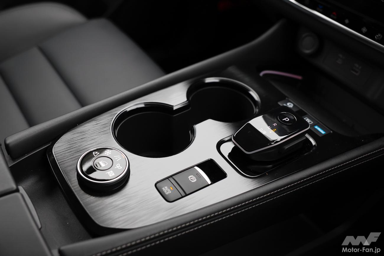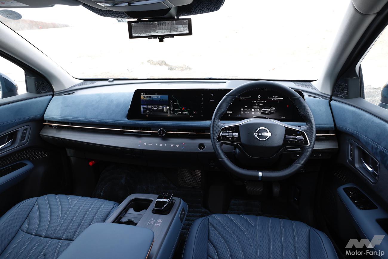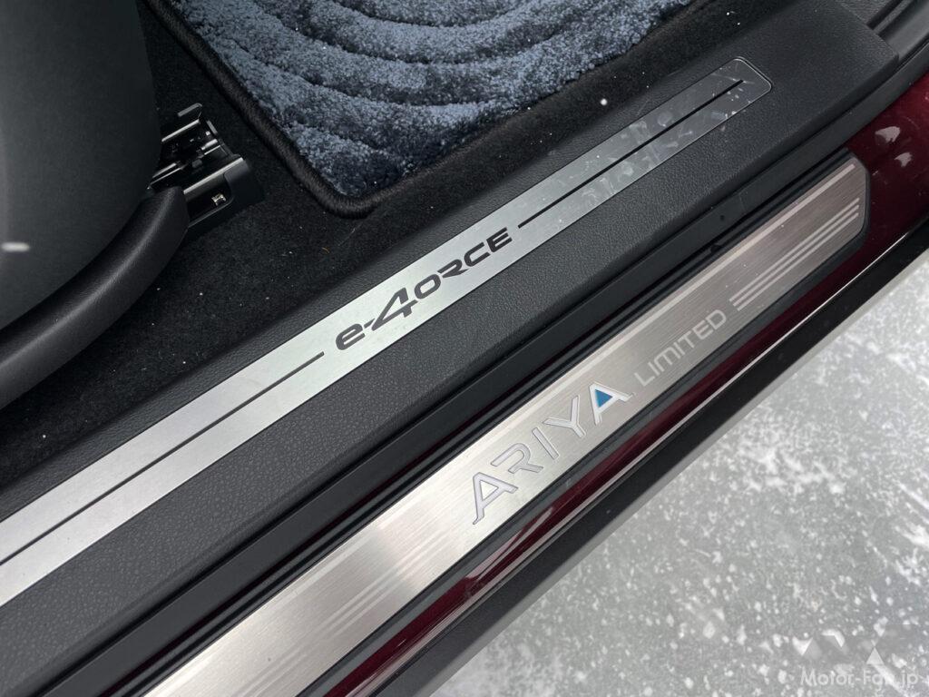 実際に走らせてみると、車高とそれに伴う着座位置の高さからアリアと比べて腰高感があり、クルマの動きもインフォメーションもアリアよりは大きい。制御の介入や緻密さもアリアほど強烈ではなく、既存のクルマ、4WDシステムの延長線上にあるように感じられた。