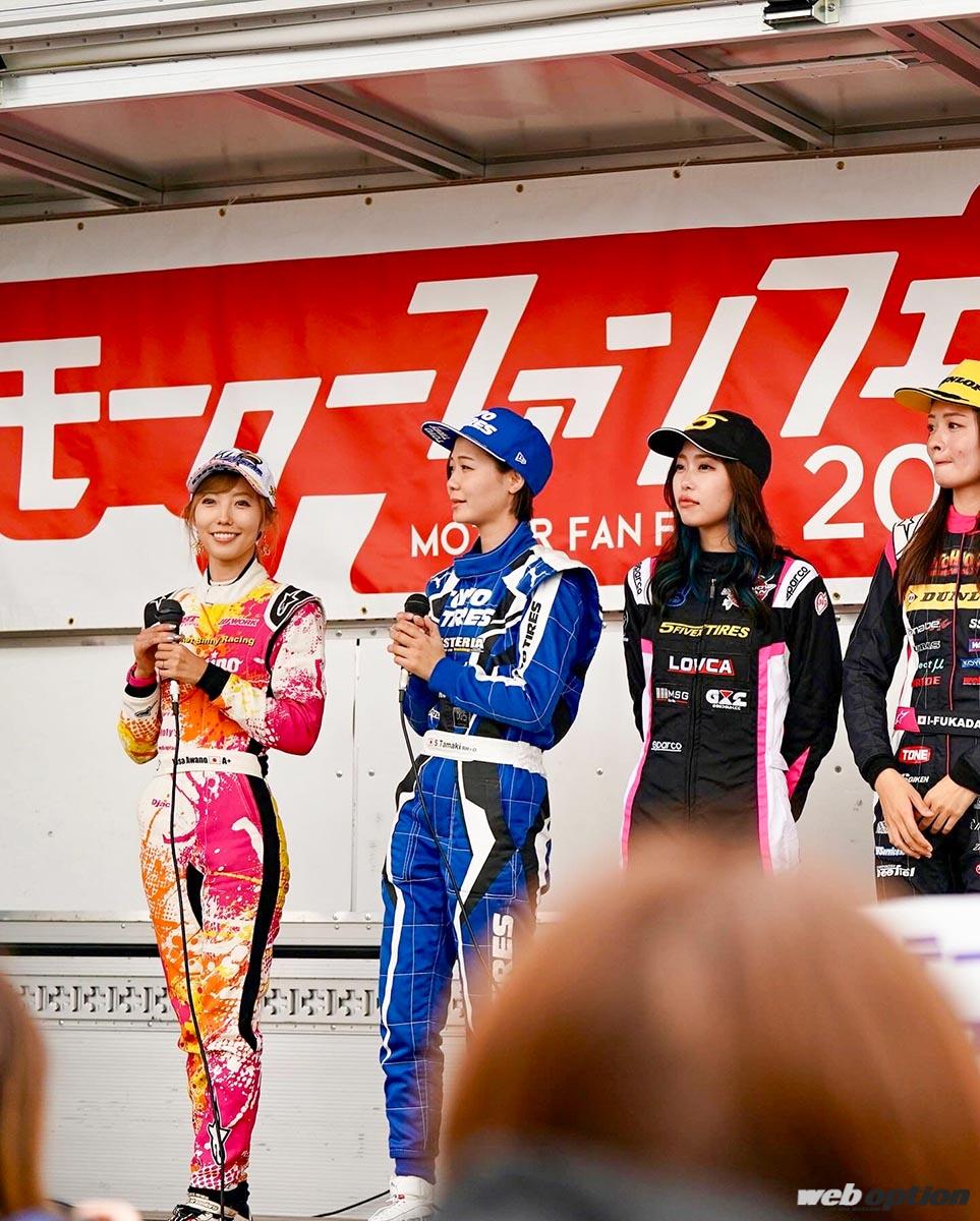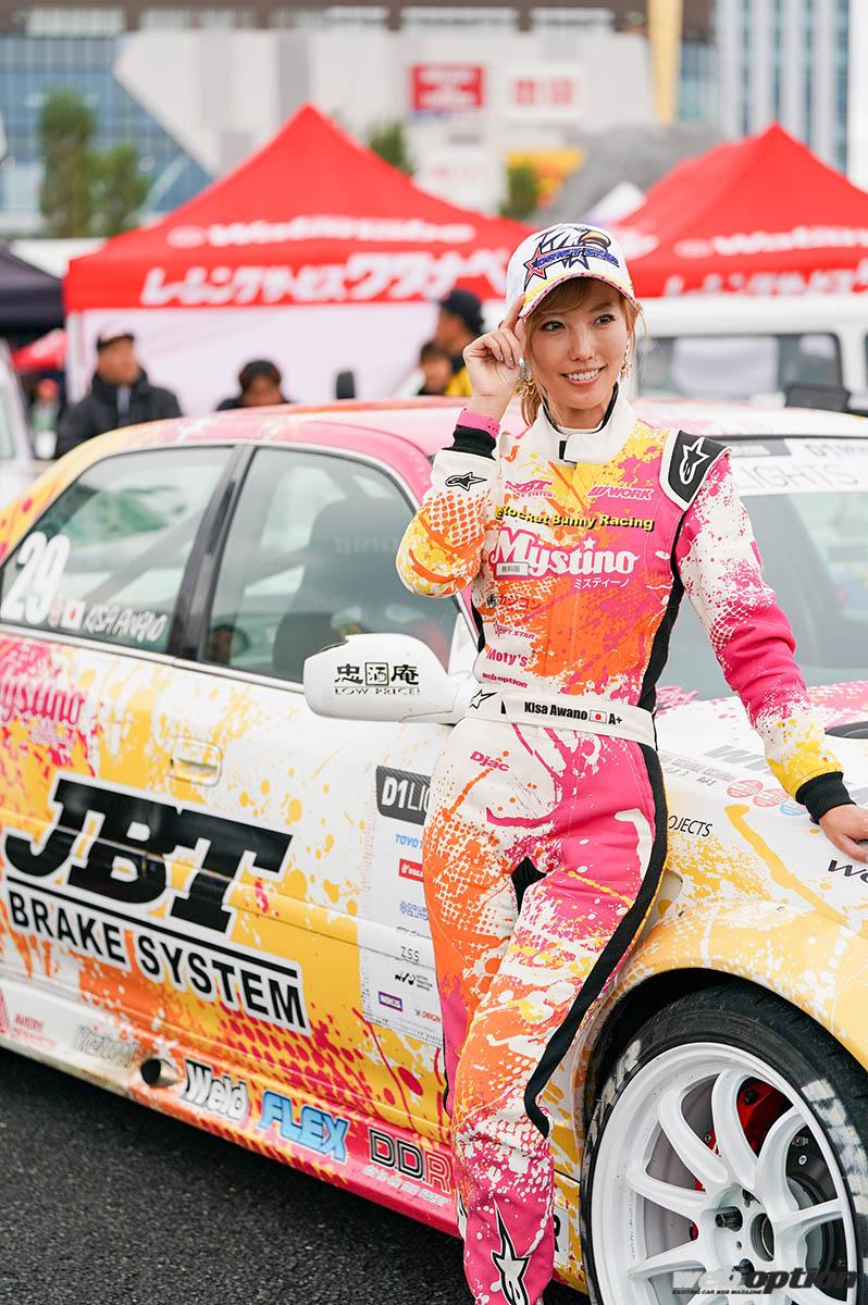 そして日曜日。残念ながら小雨の中での開催となりましたが、この日は予定通りにD1GPの予選がスタート。そしてお昼のイベントタイムでは雨も上がり、無事にレディースドライバーデモランが行われました! 練習はずっと雨でしたが、本番でやっとドライを走ることができました〜!