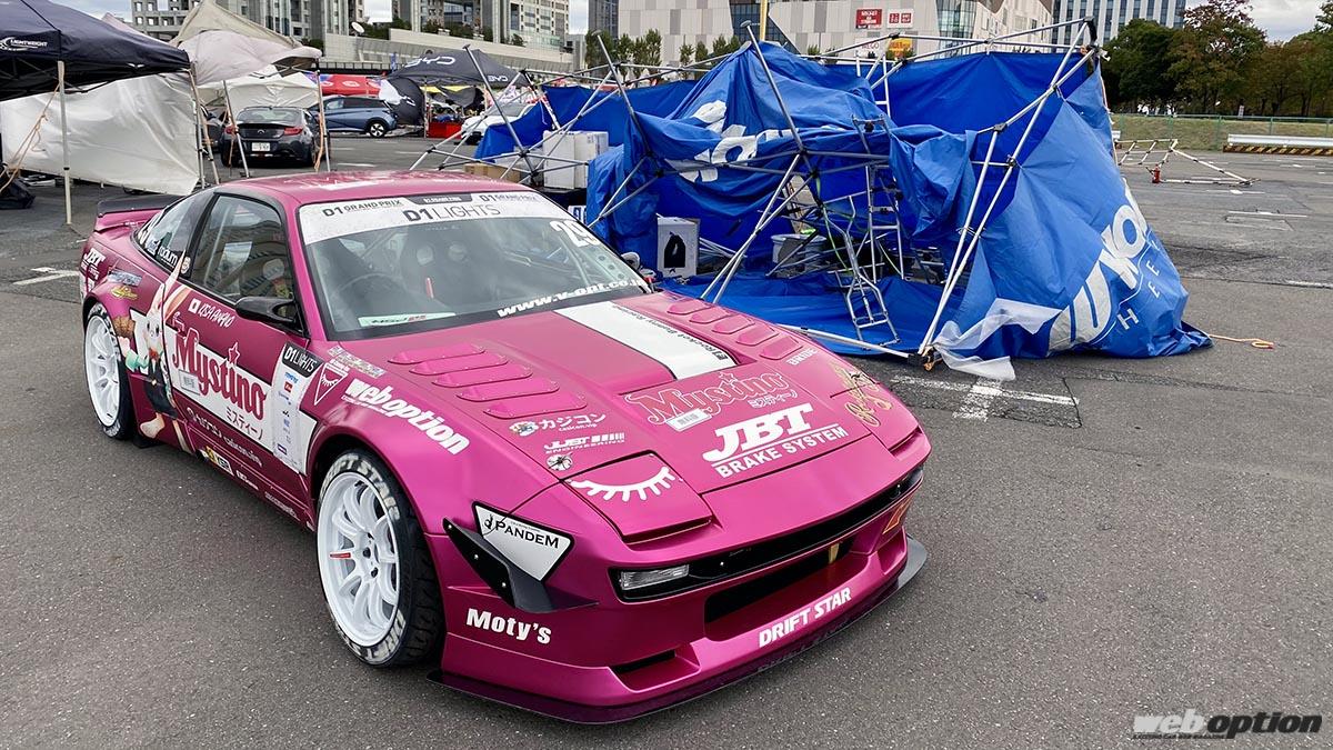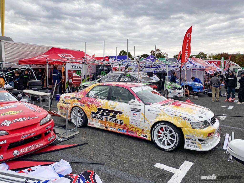 この影響で、残念ながら土曜日のモーターファンフェスタは中止。D1GPも約3時間遅延での開催となり、競技以外のイベント類がほぼ全てキャンセル。デモランもなくなってしまったのです…。