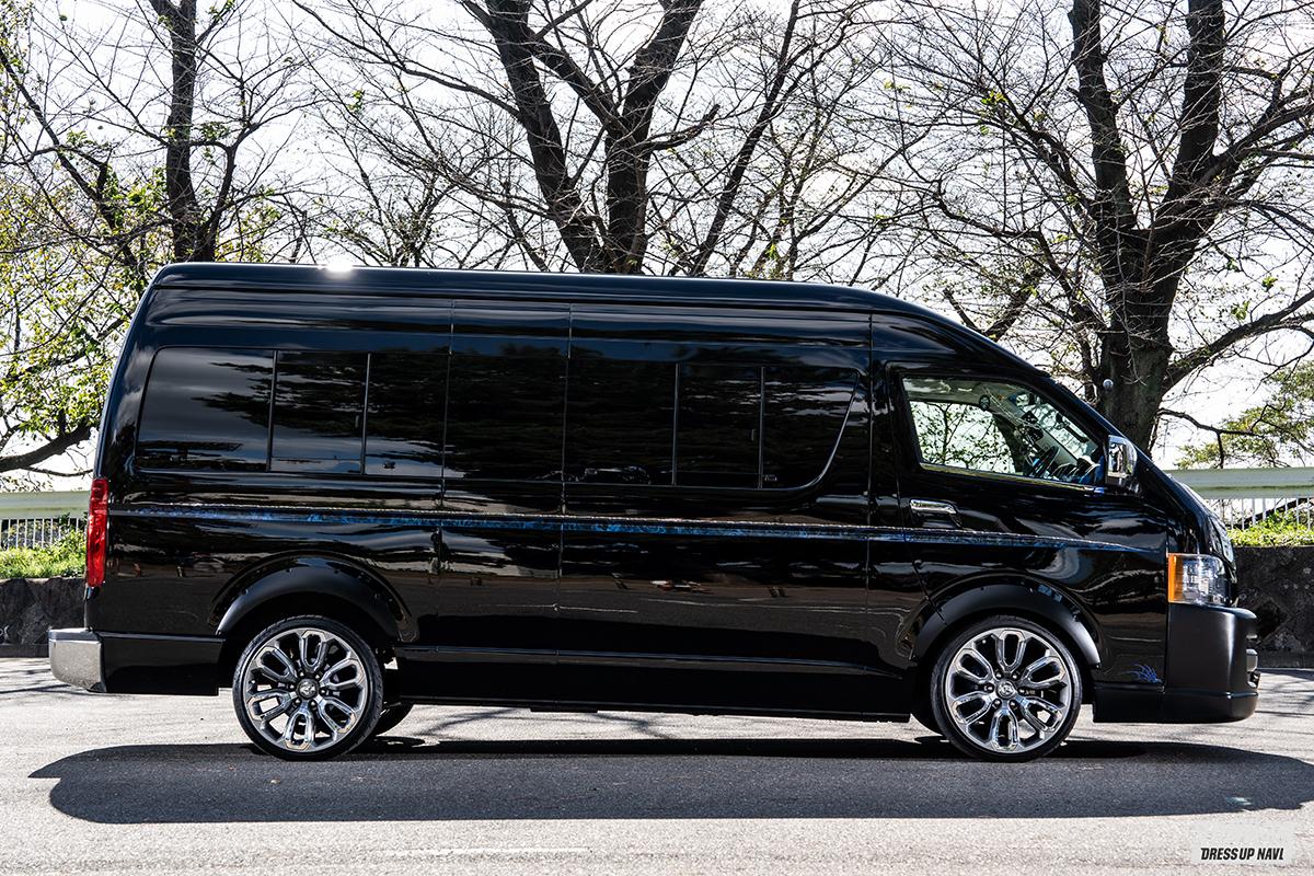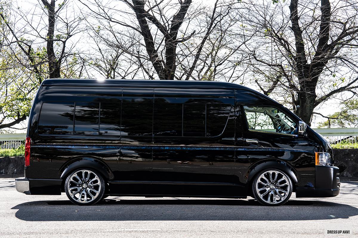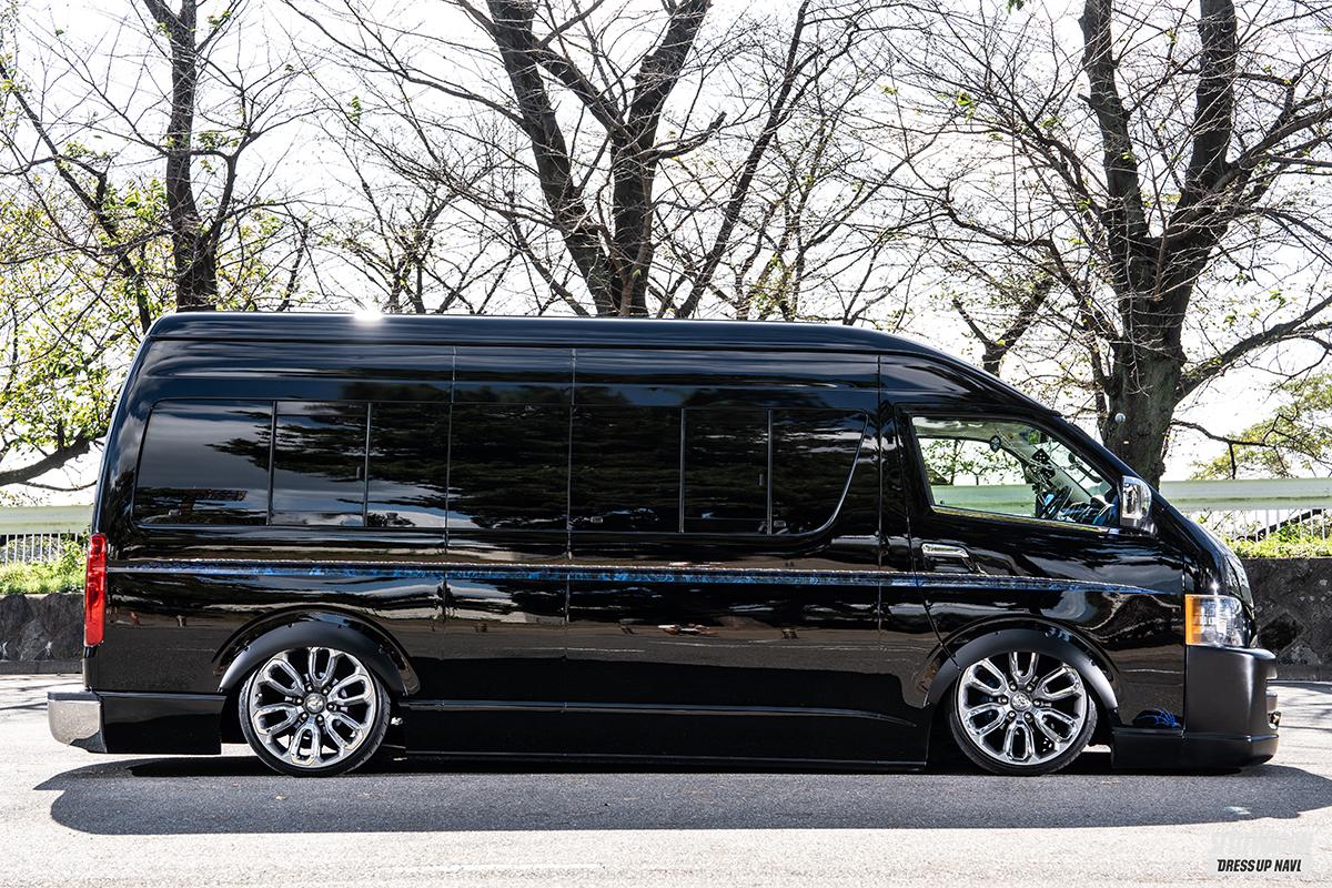 ハイドロという単語を聞くと、飛び跳ねるクルマの姿を思い浮かべる人もいるはず。だが、実は快適な乗り心地&抜群の機能性や極低スタイルが手に入るハイドロも存在する。それが今回紹介するシェイカーズのハイドロシステム。ハイエースの車高を上下する手段といえば、トーションバー調整やダウンブロック、空気の力で上下させるエアサスがある。一方でハイドロは油圧の力を利用して車高を上下。構築するシステムや部品の都合上、他のサスペンションパーツと比べて高価なことや、約一年ごとにシステムの点検が必要となるが、それらを払拭する優れたメリットもハイドロは盛り沢山。車高の上下の速度が速く、その構造により高級サルーンの如く格別な乗り心地を実現。シェイカーズのハイドロは、それらメリットに加えてより使い勝手も充実。苦心の末に開発した制御システムにより、上下動作の際に油圧を均等に分散。それを1ポンプ式で実現することでシステムの省スペース化に成功した。また、足回りの動きを激変させるCノッチ加工や4リンク加工といったメニューもシェイカーズでは提供中。格別かつ機能的な足回りを手に入れたいのならば、シェイカーズのハイドロはその理想を現実にしてくれるはずだ。