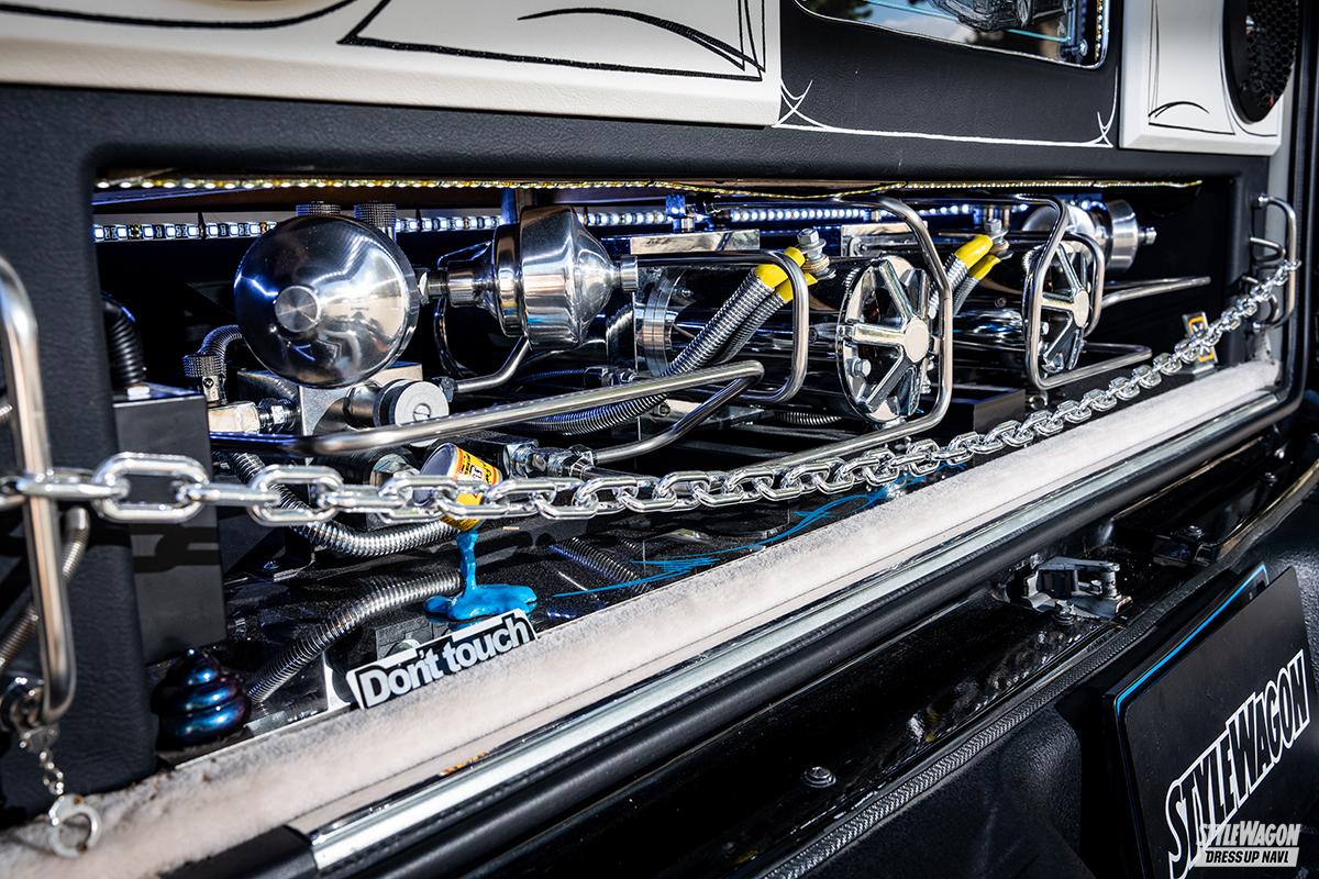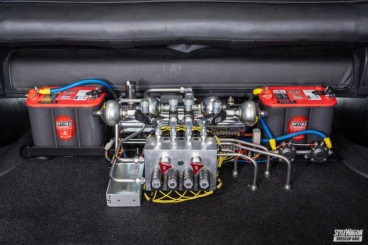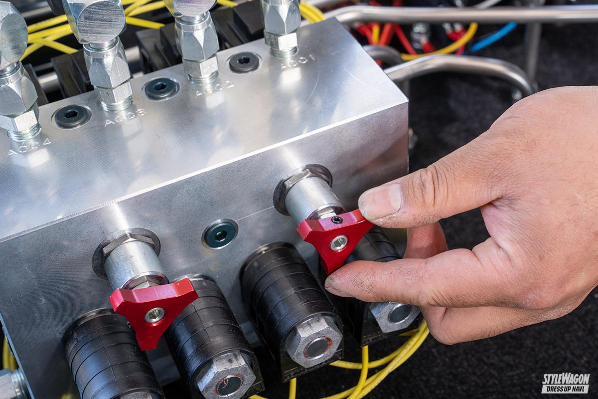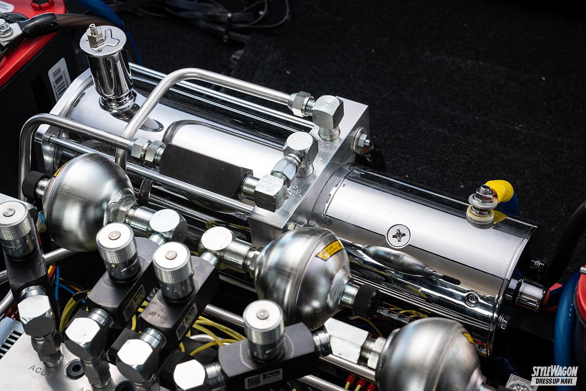 ハイドロという単語を聞くと、飛び跳ねるクルマの姿を思い浮かべる人もいるはず。だが、実は快適な乗り心地&抜群の機能性や極低スタイルが手に入るハイドロも存在する。それが今回紹介するシェイカーズのハイドロシステム。ハイエースの車高を上下する手段といえば、トーションバー調整やダウンブロック、空気の力で上下させるエアサスがある。一方でハイドロは油圧の力を利用して車高を上下。構築するシステムや部品の都合上、他のサスペンションパーツと比べて高価なことや、約一年ごとにシステムの点検が必要となるが、それらを払拭する優れたメリットもハイドロは盛り沢山。車高の上下の速度が速く、その構造により高級サルーンの如く格別な乗り心地を実現。シェイカーズのハイドロは、それらメリットに加えてより使い勝手も充実。苦心の末に開発した制御システムにより、上下動作の際に油圧を均等に分散。それを1ポンプ式で実現することでシステムの省スペース化に成功した。また、足回りの動きを激変させるCノッチ加工や4リンク加工といったメニューもシェイカーズでは提供中。格別かつ機能的な足回りを手に入れたいのならば、シェイカーズのハイドロはその理想を現実にしてくれるはずだ。
