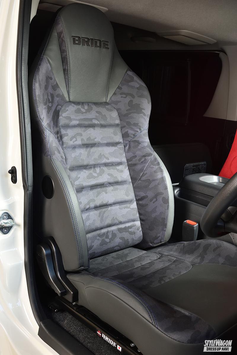 そこでオススメしたいのが、思い切ってシートを交換してしまうこと。中でもモータースポーツシーンでも活躍するブリッドは、ホールド性が高いフルバケットタイプから長時間座っても疲れにくいリクライニングタイプまで、様々なモデルを開発してきたシートの匠。もちろん多くのハイエースユーザーも愛用しているが、クルマをアクティブに使いたい人に最適なモデルが、機能性と遊び心を兼ね備えたストリームスゴースト。