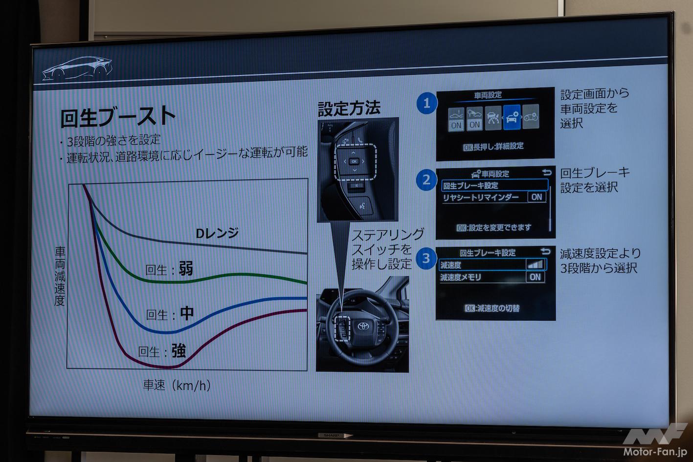 新型プリウスの「ハイパフォーマンスモデル」「トップグレード」に当たるのがプリウスPHEVだ。先代プリウスにもPHEVモデルはラインアップされていたが、「どうしても、プリウスとプリウスPHEVは別シリーズのように捉えられていたので、新型ではプリウスシリーズのトップモデルとしてPHEVが存在しているように見えるようにした」(新型プリウス開発責任者の大矢賢樹さん)という。
