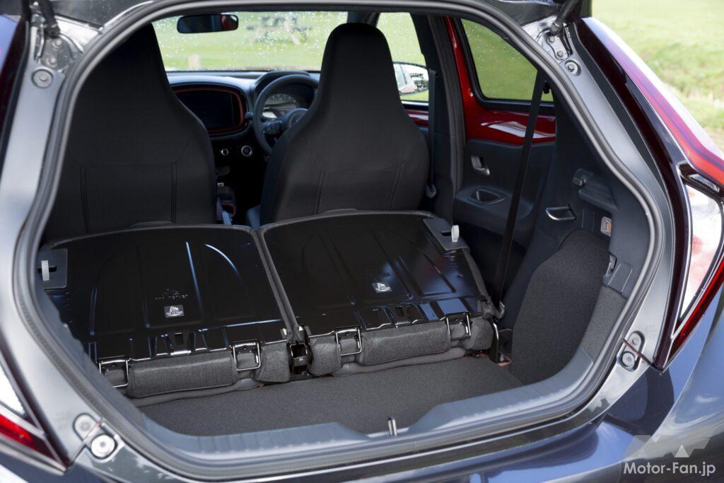 全長で240mmも短い。のに、全幅はほぼ同じ。プラットフォームは、ヤリスと同じTNGA GA-BをAセグメント用にしたものを使っているから、まさに最新。ヤリスで定評のある走りも受け継いでいる。最小回転判型は4.7mだから小回りもきく。
