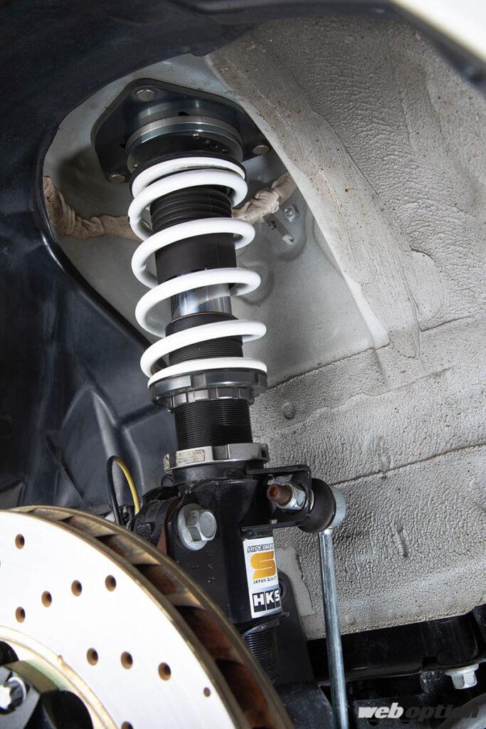 走りのステージは基本的にストリートメインのため、車高調は“乗り心地も良い”と評判のHKSハイパーマックスSをセレクト。これは、助手席に乗る彼女にも気を使いつつ、近いうちにサーキットでスポーツ走行も楽しみたいという、志賀さんの気持ちまで組み込んだベストバイだ。