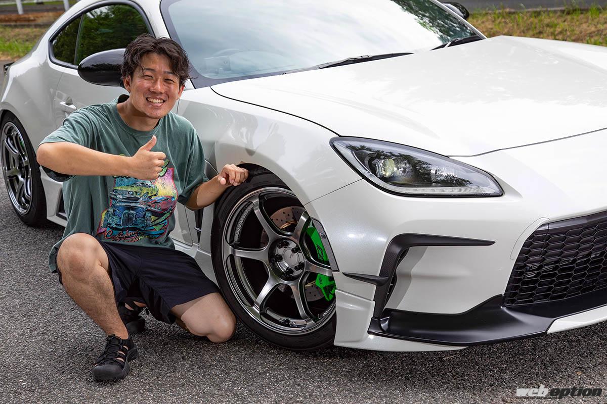 「NATSを卒業して、今は埼玉県所沢市にある鈑金塗装の会社で修行中です。その間もAE111に乗り続けて、頭金をどうにか捻出して、2022年の中頃にこのGR86を購入しました! 自慢のポイントは、グリーン色のD2製ホローキャリパー(F6POT/R4POT)ですね。僕はシンプルでカッコ良いクルマが好きなので、今後このクルマに装着するアイテムは、色があるとすれば極力グリーンだけで、主張しすぎない範囲のワンポイントアクセントとして統一していきたいですね!」と、志賀さん。