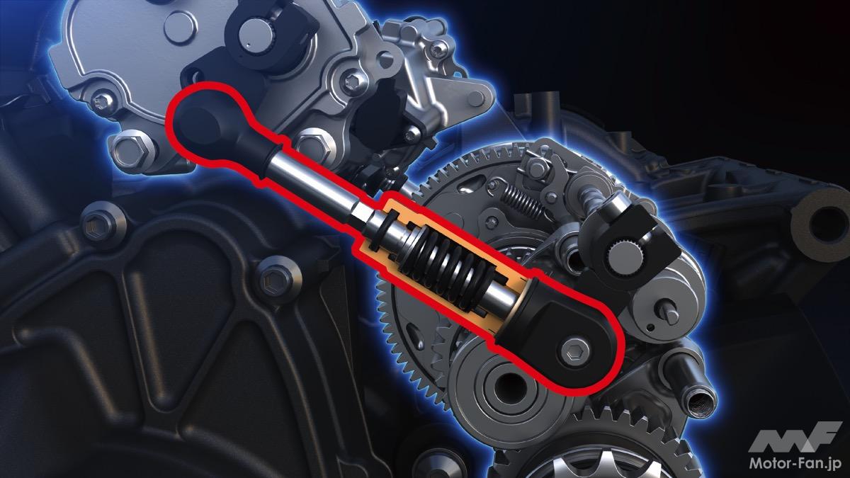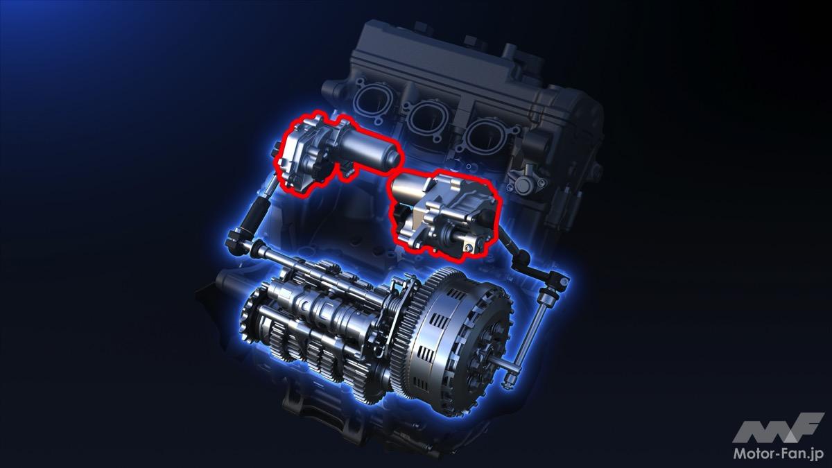 「Y-AMT」は、従来のギアボックスをそのまま使用し、クラッチと変速を自動化する機構。クイックシフターとは違い、発進・停止・半クラッチが自動化されている。