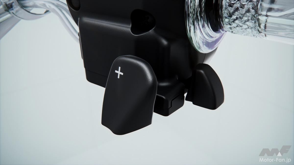 これに伴い、クラッチペダルとシフトペダルを除去。MTモード選択時には左手元にあるスイッチでギアを選択する。
