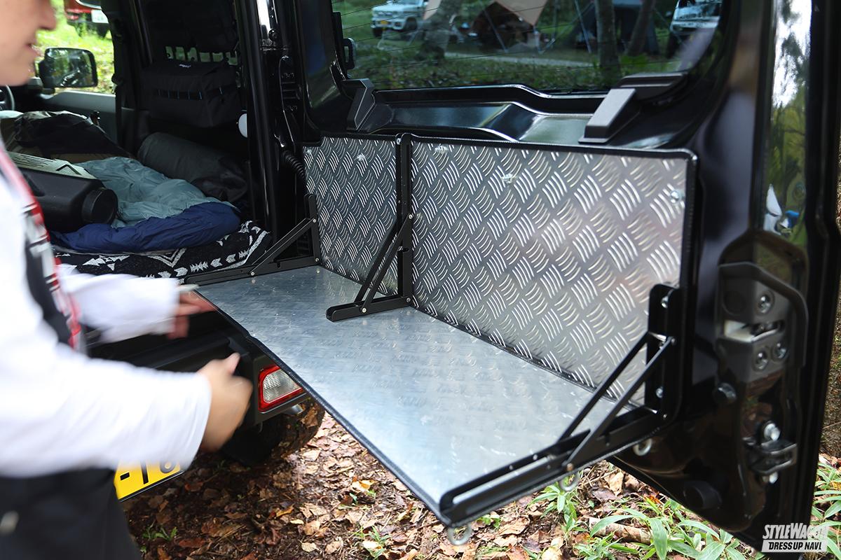前車のN-boxの車検を更新(1年4ヶ月待ち)してまで心待ちにした64。乗り換えには相応の理由があり、「趣味が多くて(笑)。キャンプに釣り、登山、それに伴う車中泊を考えるとコレしかない」とおかちゃん。無論、納車後はカスタム沼にハマり、納車前に購入したMIDのH12ショットガンやショウワガレージのルーフキャリア、OGベースのマルチステップなどで、スタイルUPしている。