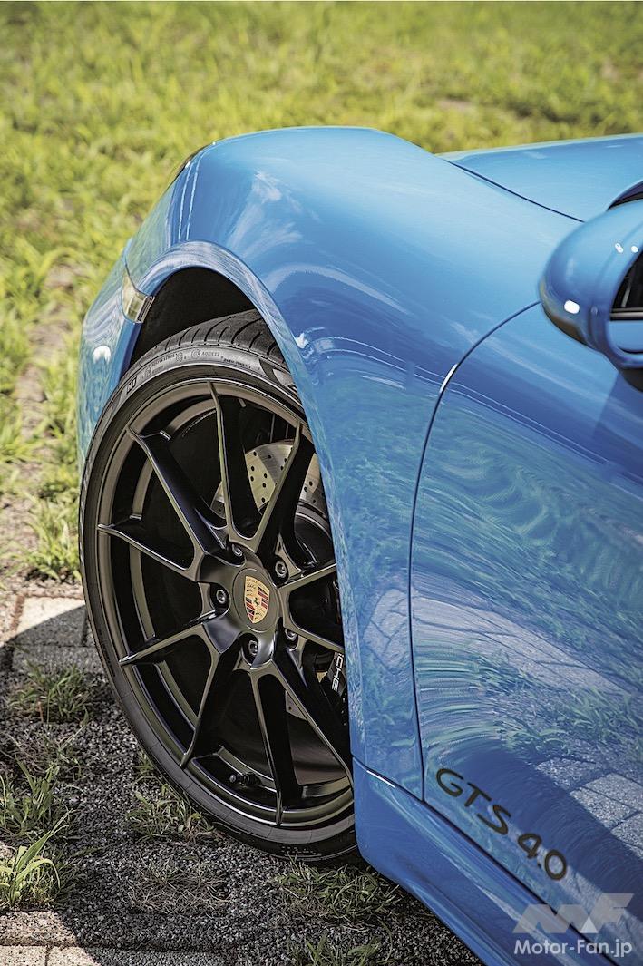 撮影車両が履くのは「GTS 4.0」に標準採用の「718 Sportホイール」で20インチ。タイヤサイズは前後で異なるが、リヤは265mm幅で大排気量エンジンが生むパワーを受け止める。