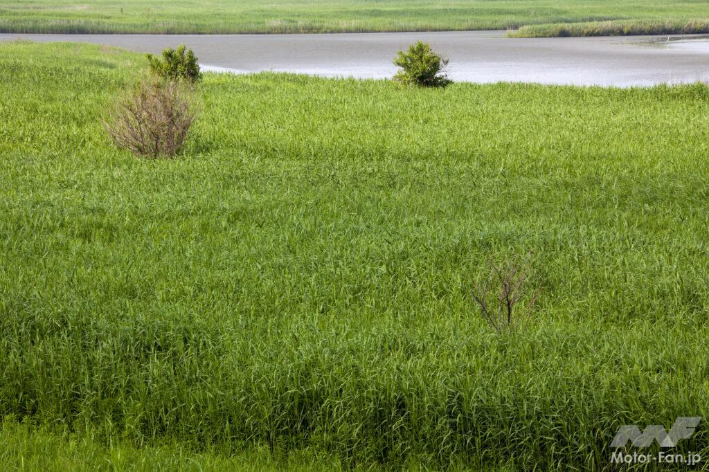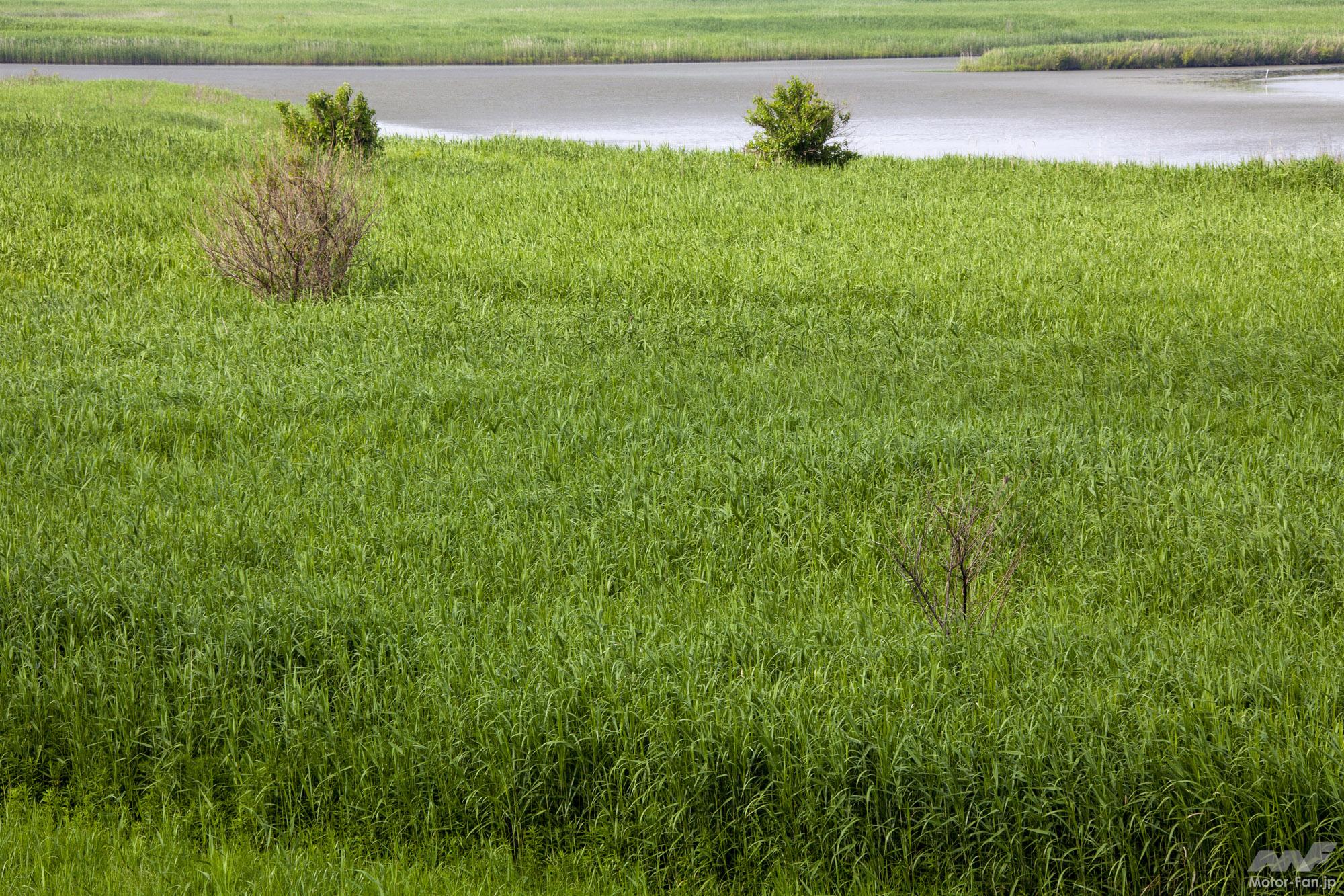 面積は33㎢(3,300ha)。にわかにはピンとこないスケールだが、東京ドーム球場のおよそ700倍を超える。そんな広さを目の前にする光景には圧倒されてしまう。湿原、葦(よし)が生い茂る原っぱ、そして上空の青空がどこまでも続く景色はともかく広い。その場に身を置くだけで、実に爽快な気分になれるのだ。