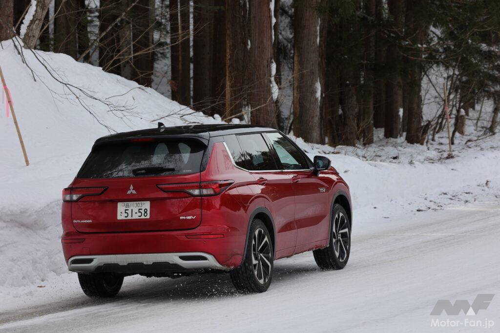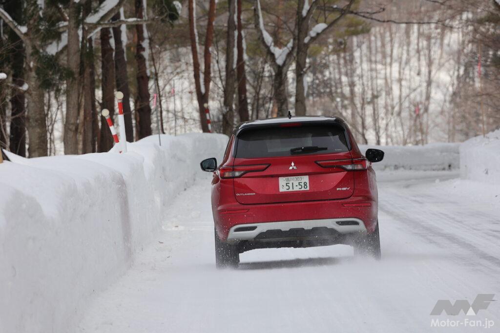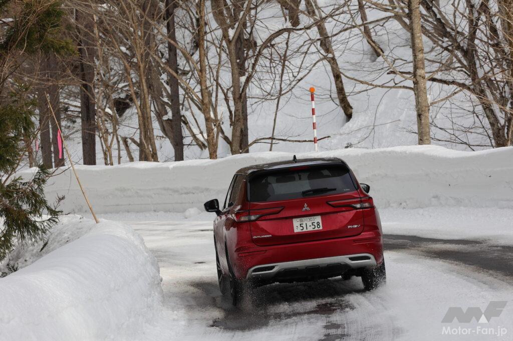 雪道のドライブでは、滑りやすい路面だからといって、ドライバーに一切不安感を抱かせないのが印象的だった。そうした路面をゆっくりと慎重に走るのもいいが、タイヤのグリップ限界を使い切るような走りも、応答性が高く、制御の精度と自由度が高いツインモーター4WDの特徴を生かしたS-AWCのおかげで難なくこなしてしまう。路面を選ばない懐の深さが、アウトランダーPHEVの大きな魅力だ。