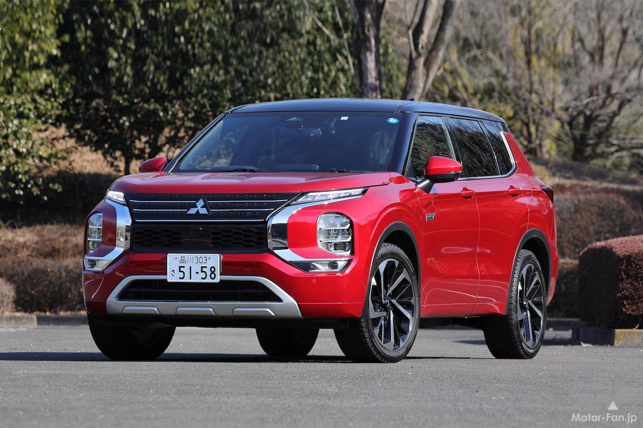 三菱アウトランダーPHEV P 全長×全幅×全高:4710mm×1860mm×1745mm ホイールベース:2705mm 車重:2110kg サスペンション:Fマクファーソンストラット式&マルチリンク式 駆動方式:ツインモーター4WD エンジン 形式:2.4ℓ直列4気筒DOHC 型式:4B12MIVEC 排気量:2359cc ボア×ストローク:88.0×97.0mm 圧縮比:11.7 燃料供給:PFI 最高出力:98kW/5000pm 最大トルク:195Nm/4300rpm 燃料:レギュラー 燃料タンク:56ℓ フロントモーター 型式:S91 最高出力:85kW(定格出力40kW) 最大トルク:255Nm リヤモーター 型式:YA1 最高出力:100kW(定格出力40kW) 最大トルク:195Nm リチウムイオン電池 総電圧:350V 総電力量:20kWh 燃費:ハイブリッド燃料消費率WLTCモード 16.2km/ℓ 市街地モード 17.3km/ℓ 郊外モード 15.4km/ℓ 高速道路モード 16.4km/ℓ EV走行換算距離(等価EVレンジ):83km 車両本体価格:570万5700円