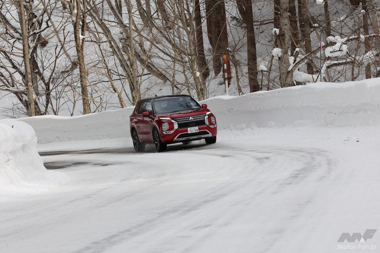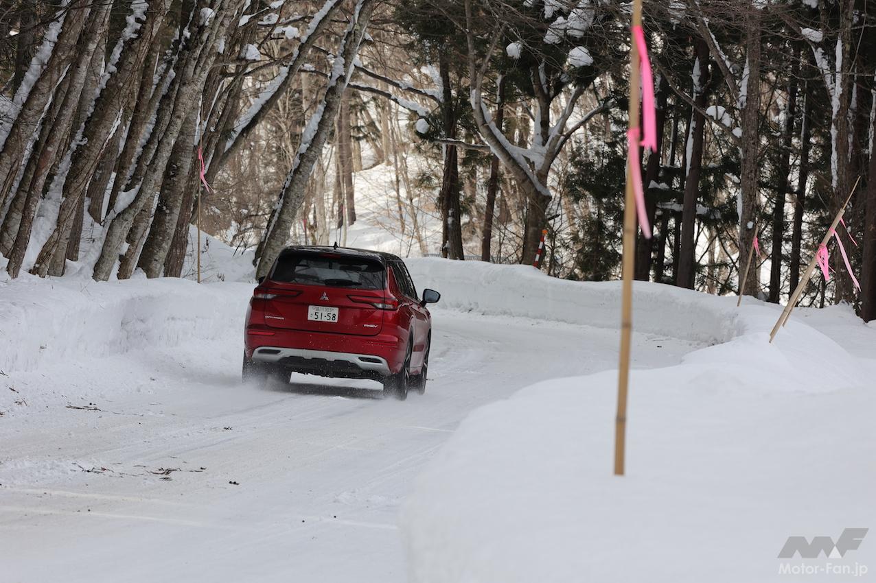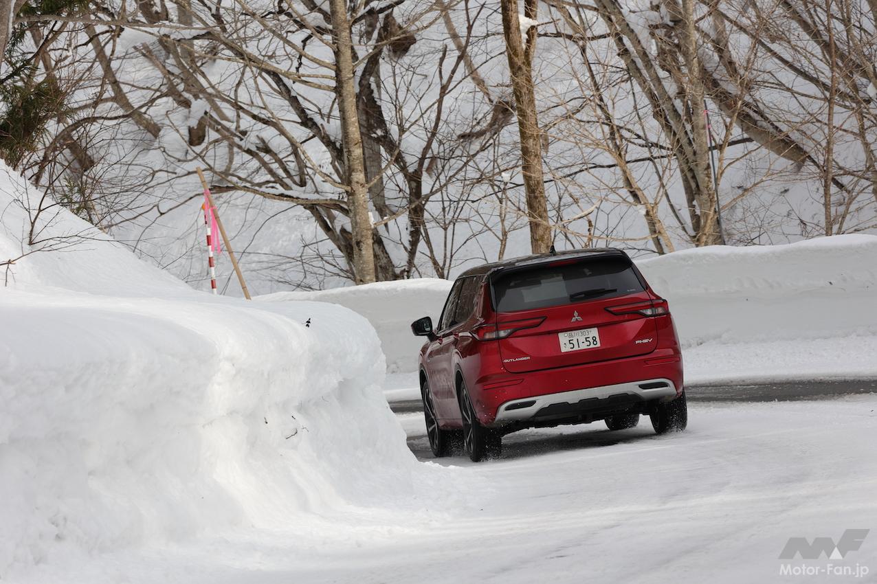雪道のドライブでは、滑りやすい路面だからといって、ドライバーに一切不安感を抱かせないのが印象的だった。そうした路面をゆっくりと慎重に走るのもいいが、タイヤのグリップ限界を使い切るような走りも、応答性が高く、制御の精度と自由度が高いツインモーター4WDの特徴を生かしたS-AWCのおかげで難なくこなしてしまう。路面を選ばない懐の深さが、アウトランダーPHEVの大きな魅力だ。