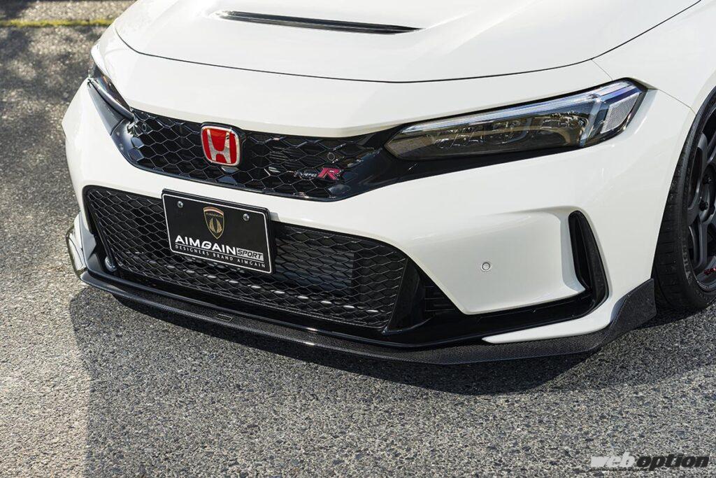 FRP製も一部設定するが、FL5シビックタイプR用はカーボンが基本。フロントスポイラー(13万2000円)は、アンダーリップを10~15mmほどロングノーズ化し、両端をフリックアップさせて整流効果とダウンフォースを両立する王道デザインだ。