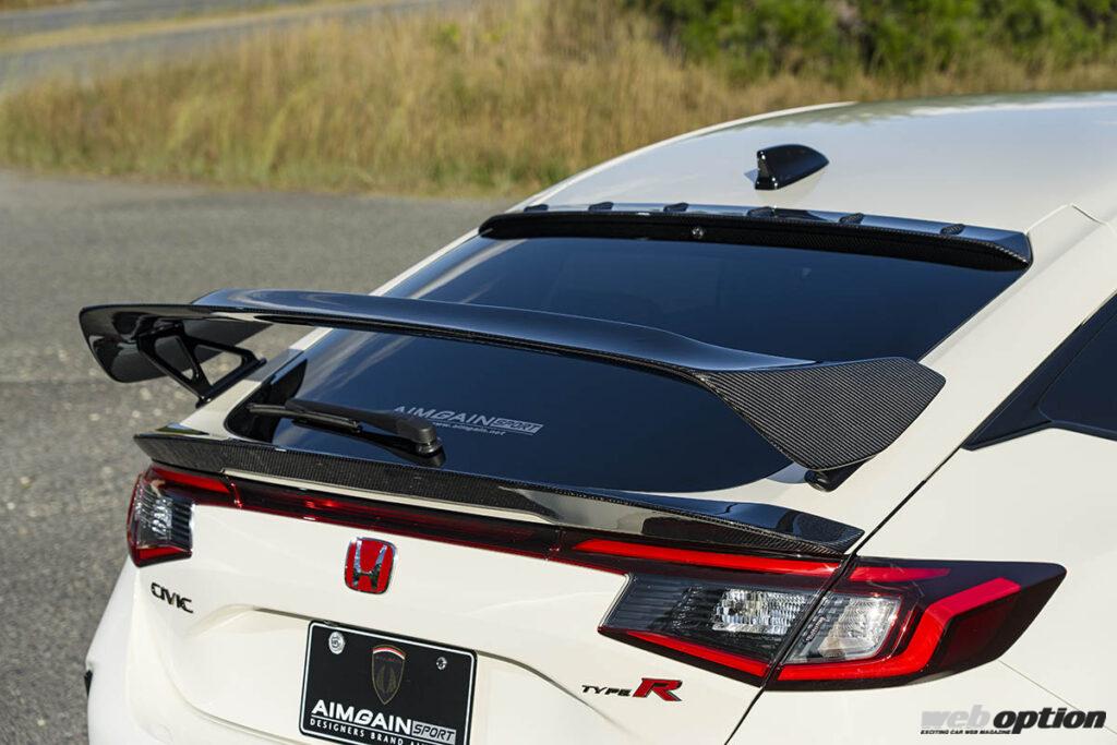新作のFL5型シビックタイプRもその流れを組み、やや落ち着きあるスタイリングとなった新型に対して、第二世代タイプRが持っていたアグレッシブさ、強さのエッセンスをプラス。純正オプションと言われておかしくない品あるテイストでまとめている。