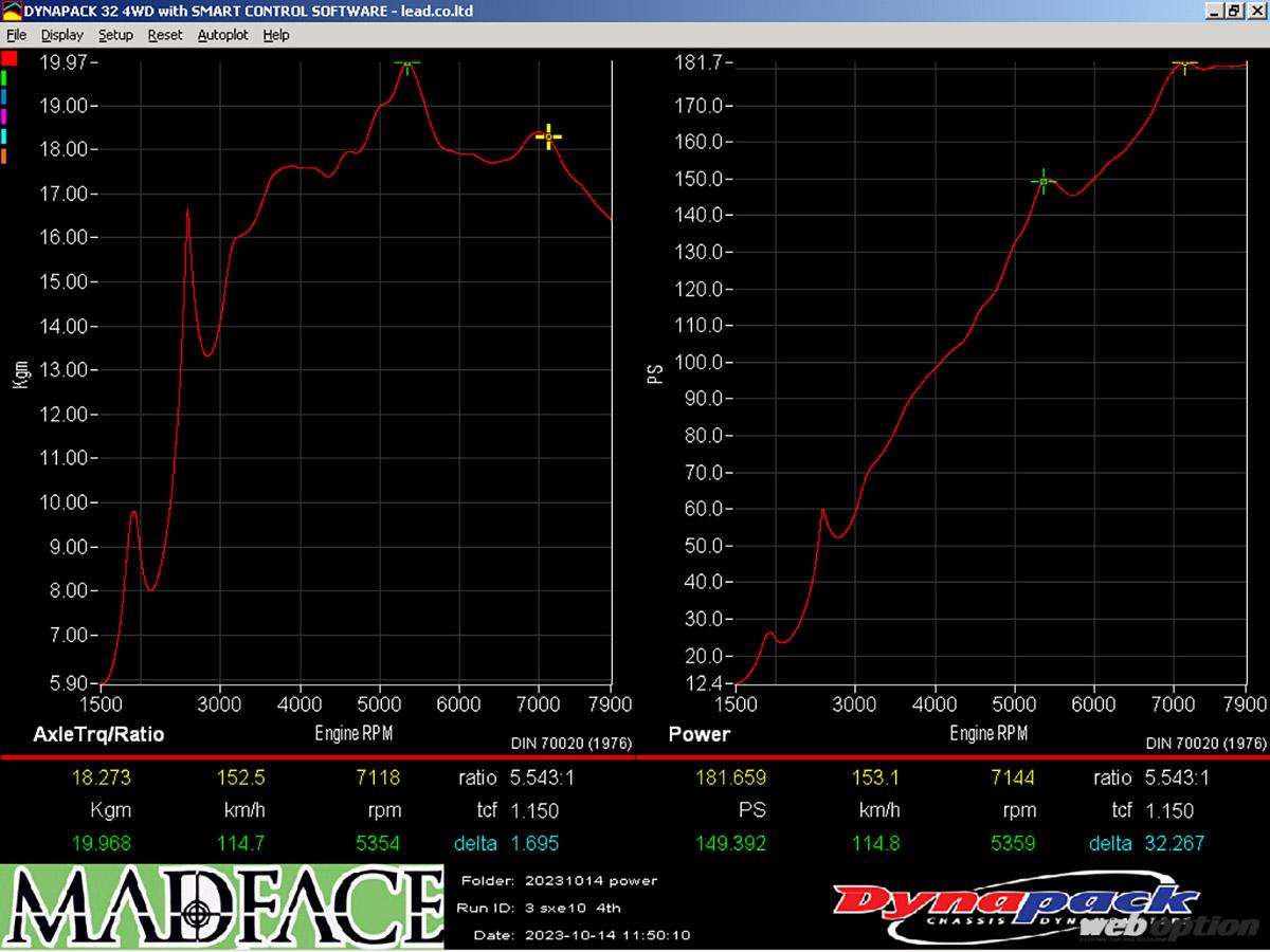 計測結果:181.7ps&20.0kgm