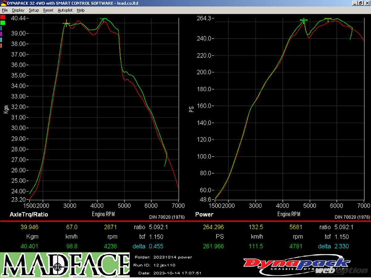 計測結果:264.3ps&39.9kgm