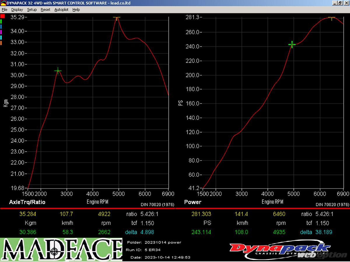 計測結果:281.3ps&35.3kgm