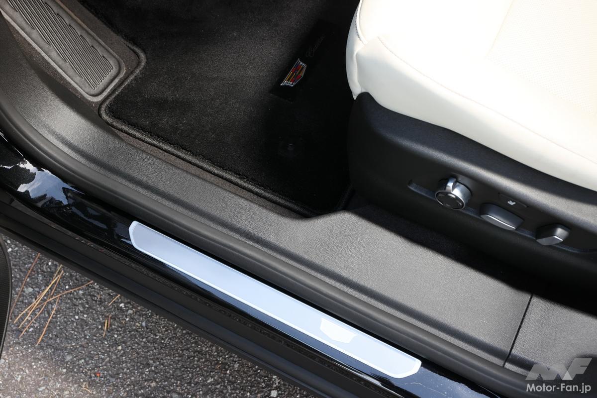 乗り込もうとして最初に気づいたのが、乗降性に対する配慮。SUVはサイドシルが高めになるし、近年は側面衝突やボディ剛性を考えてシル幅も広くなる傾向にあるが、XT4はドアパネルでサイドシルを覆うオーバーラップ方式であるのに加え、キャビンの床側も外側にえぐっており、実質的なサイドシル幅を130mmに抑えている。アメリカでは女性に人気の高いカテゴリーだからなのかも知れないが、GMもこんな細かい配慮をするようになったのだと感心した。緻密な配慮には、走り出してからも気づくことになる。