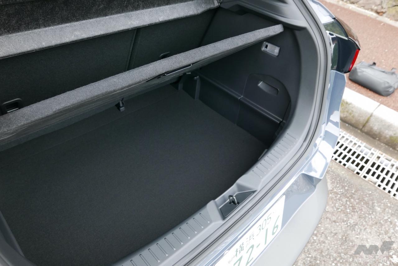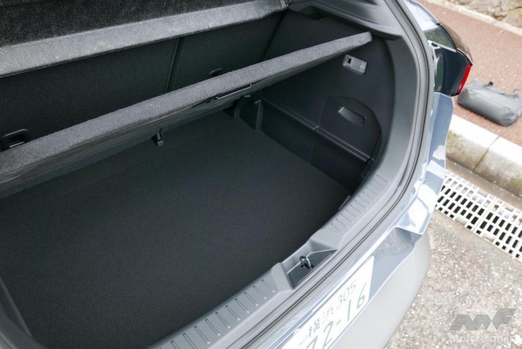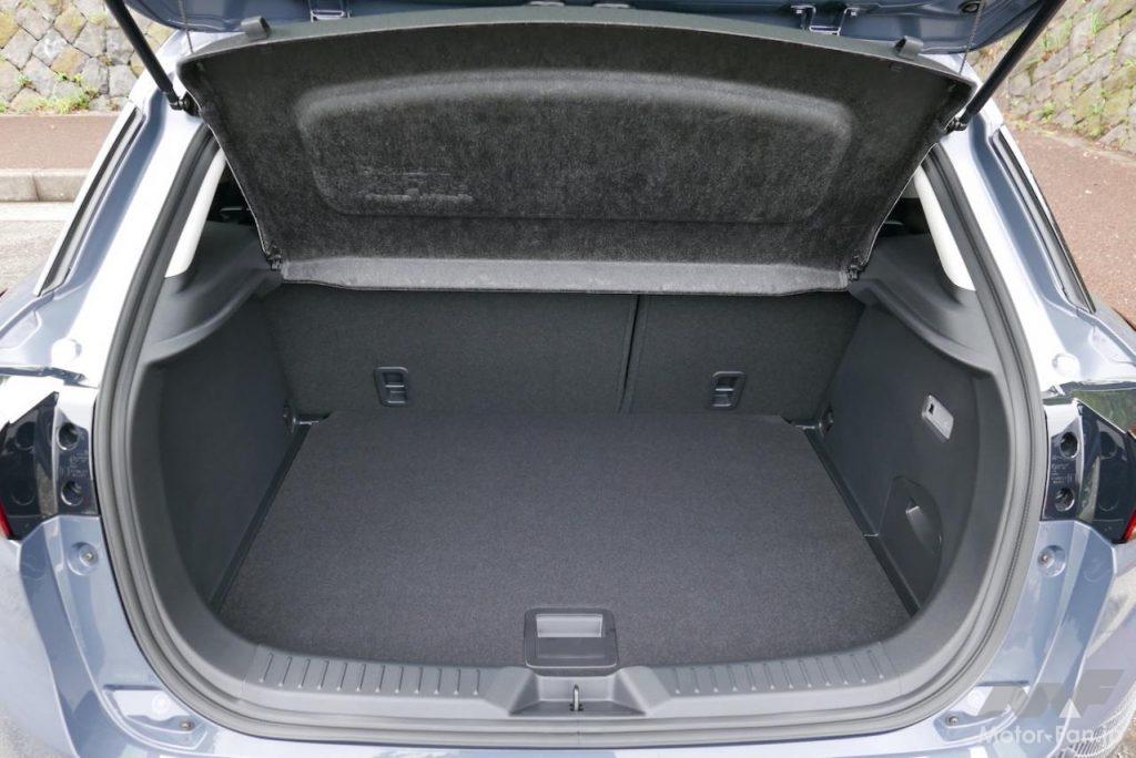 やや背高のプロポーションが生み出すちょっと高い視点と広い視界が運転しやすさにつながる。全長×全幅×全高:4275mm×1765mm×1550mmというサイズは、やはりとても使いやすい。ただし、最小回転半径が5.3mとサイズの割にやや大きいのがちょっと気になった。小回りがあまりきかない。ちなみにMAZDA2だと最小回転半径は4.7mだ。マイカーのBMW3シリーズ(F30型)が5.4m。大きなタイヤを履いたクロスオーバーの宿命だが、もうちょっとハンドルが切れてくれたらうれしい。
