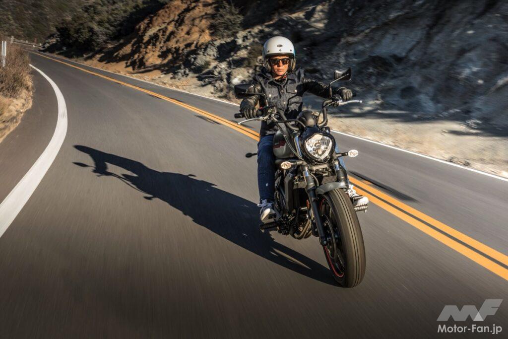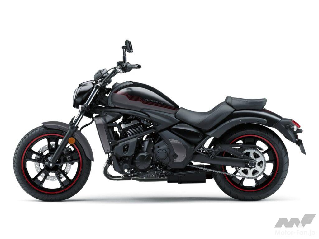 「バルカンS」には、「メタリックマットグラファイトグレー×メタリックマットカーボングレー」を設定した。また、60km/hの定地燃費(29.8km/L)とWMTCモード燃費値(22.5km/L)も更新された。価格は104万5000円。