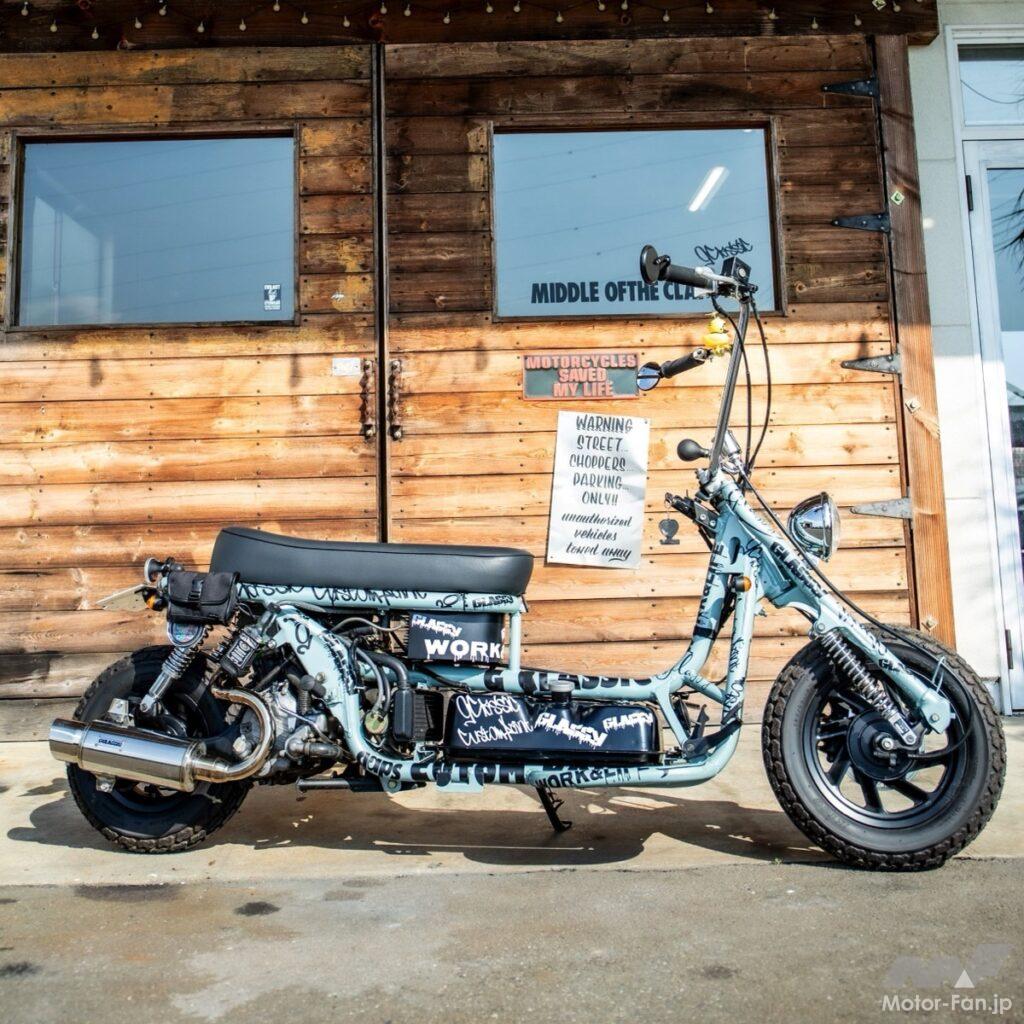 一見、「ホンダ・ズーマー」のようだが、ベースとなっているのは「ホンダ・フュージョン」であるワールドアクシスの赤坂義一代表取締役は、SDGsについて考える中、オークション会場で出品されていては落札のないフュージョンを見て、再生を思いついたという。