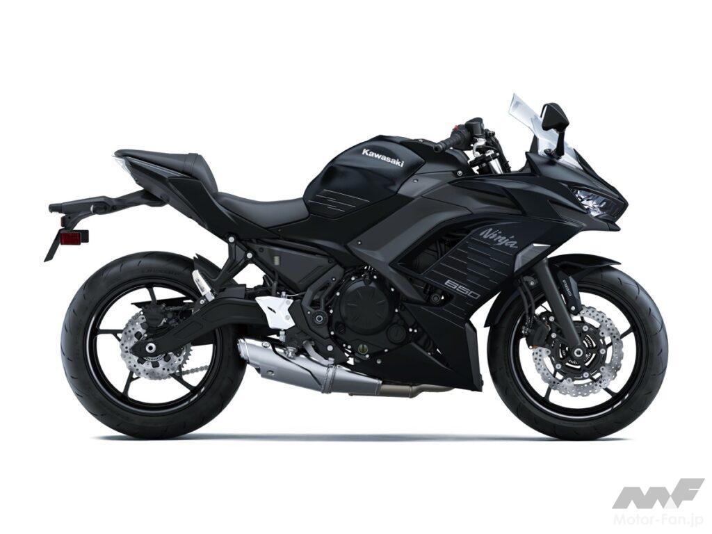 「ニンジャ650」には、「KRTエディション」に「ライムグリーン×エボニー」、基準車に「メタリックマットカーボングレー×フラットエボニー」を設定した。価格は106万7000円。