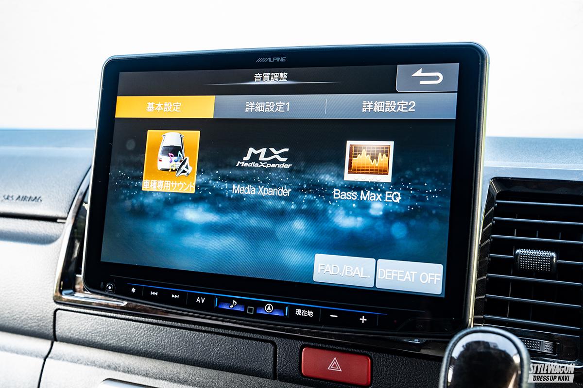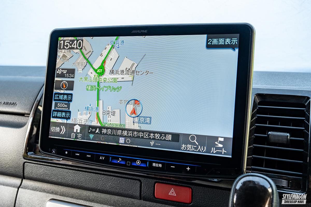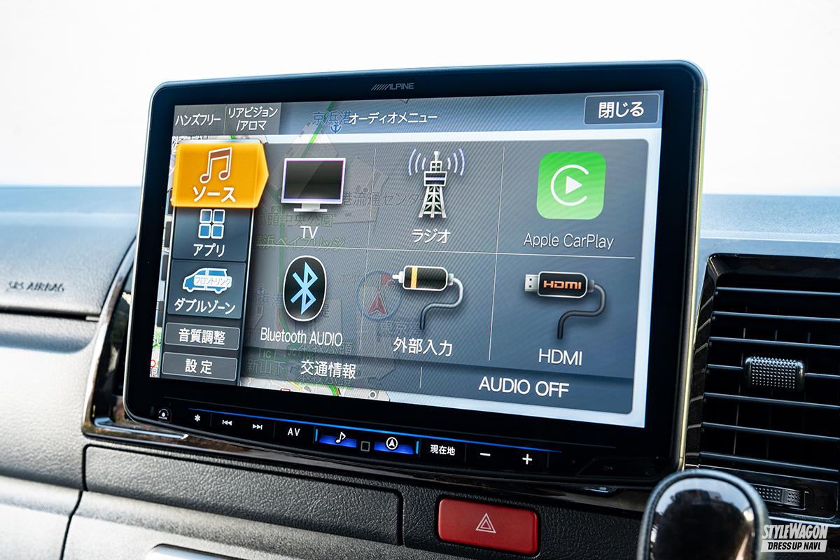 アルパインの大画面ナビ、ビッグXシリーズ。ハイエースには11型大画面を実現できるフローティングビッグX11が装着可能だ。ビッグX11の強みは大画面のみならず。アルパイン独自の音声操作「ボイスタッチ」など使いやすいナビ機能、多彩な再生メディア対応、車種専用サウンドチューニングなど多岐に渡る。