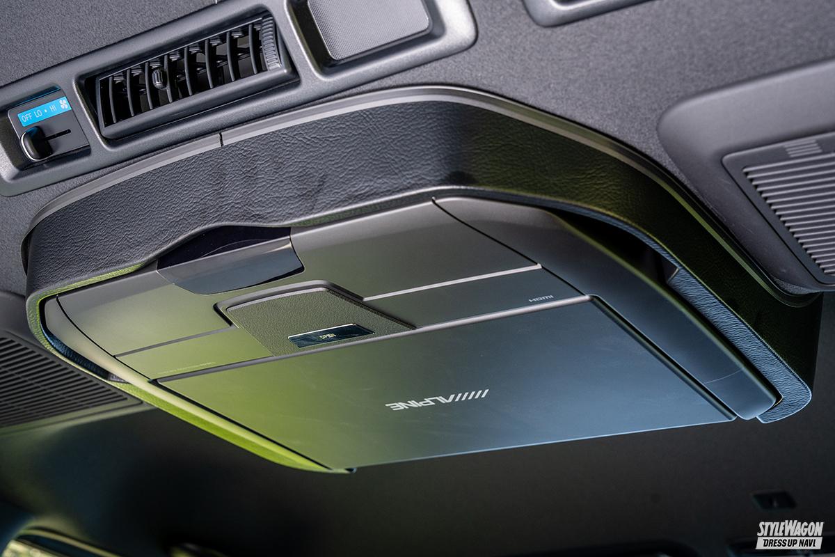 ハイエースをファミリーカーとして使う人も多いと思うが、前後席の距離が遠いのがネック。ドライブ中に映像メディアを楽しむならリアビジョンは必須。アルパインなら12.8型の大画面モニターもラインアップ。写真は機能を絞ったシンプルなモデルだが、ルームライト付きやプラズマクラスター搭載モデルもあり。