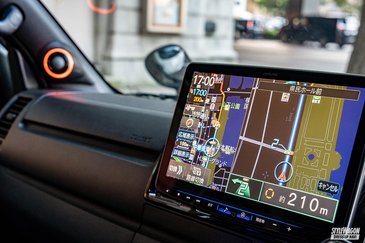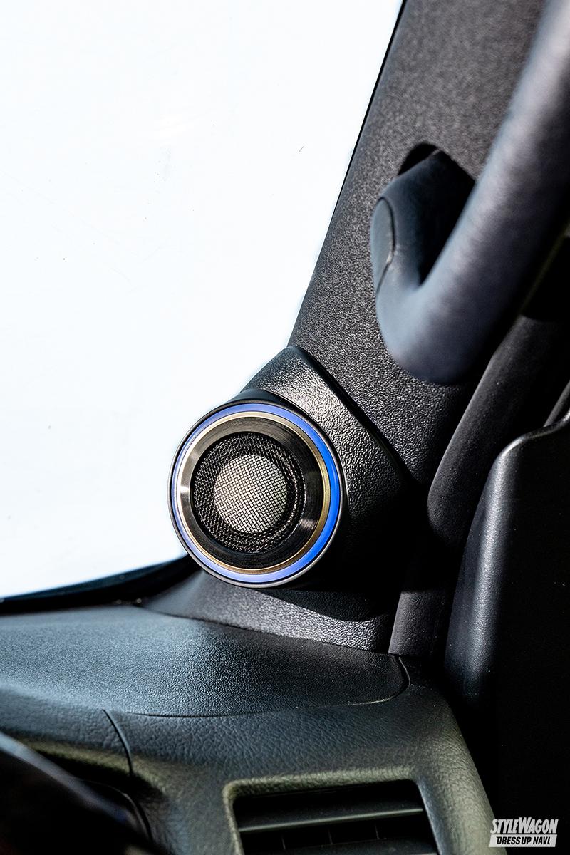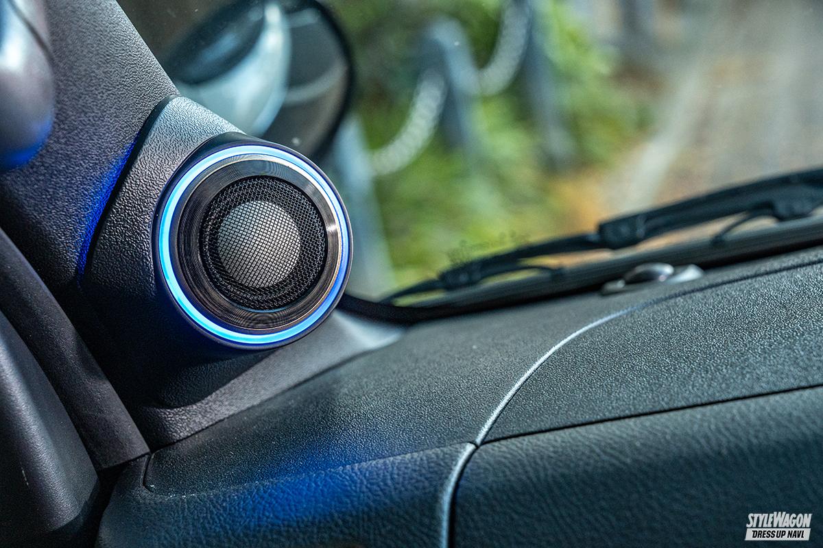 地図画面への視線移動をせずに、音声と光だけで目的地まで案内してくれる画期的なイルミシステムがアルパインスタイルから登場。曲がるべき交差点が近づくと、Aピラーにインストールしたツィーターのリング部がオレンジ色に点滅する。これはかなり画期的!