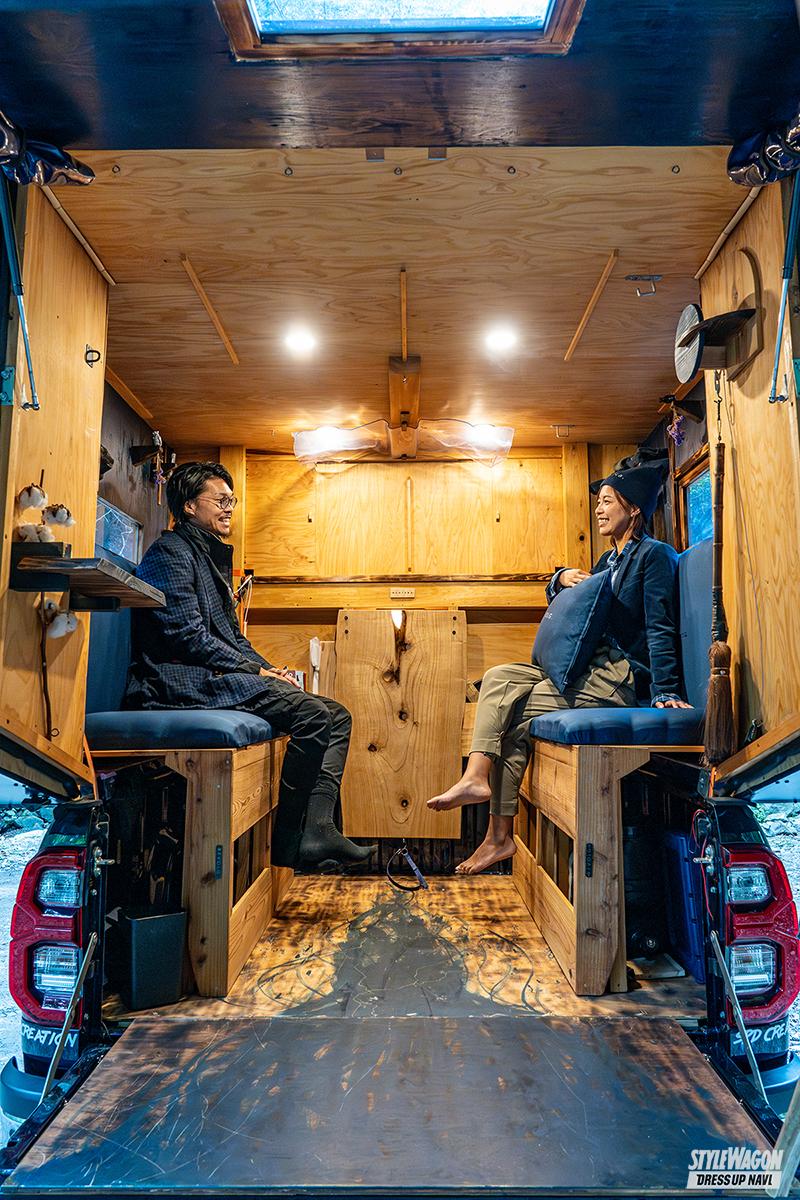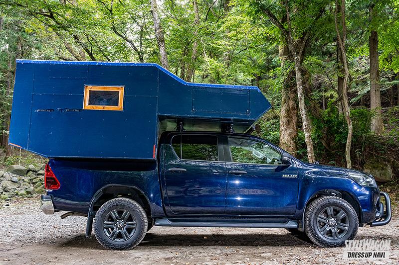 そんな経緯で完成したNEOTERA(新寺)と命名された手作りの荷台ハウスは、ヒノキを用いた木造建築の周囲をアルミの複合板で覆った構造。お寺をモチーフとした和のテイストを採り入れ、洋風が主流のキャンピングカーとは一線を画す雰囲気と安心感が真骨頂。水回りを省いた設計で単純には比較できないものの、一般的なキャンピングシェルが300万円程度することを考慮すればコストパフォーマンスも抜群なのである。