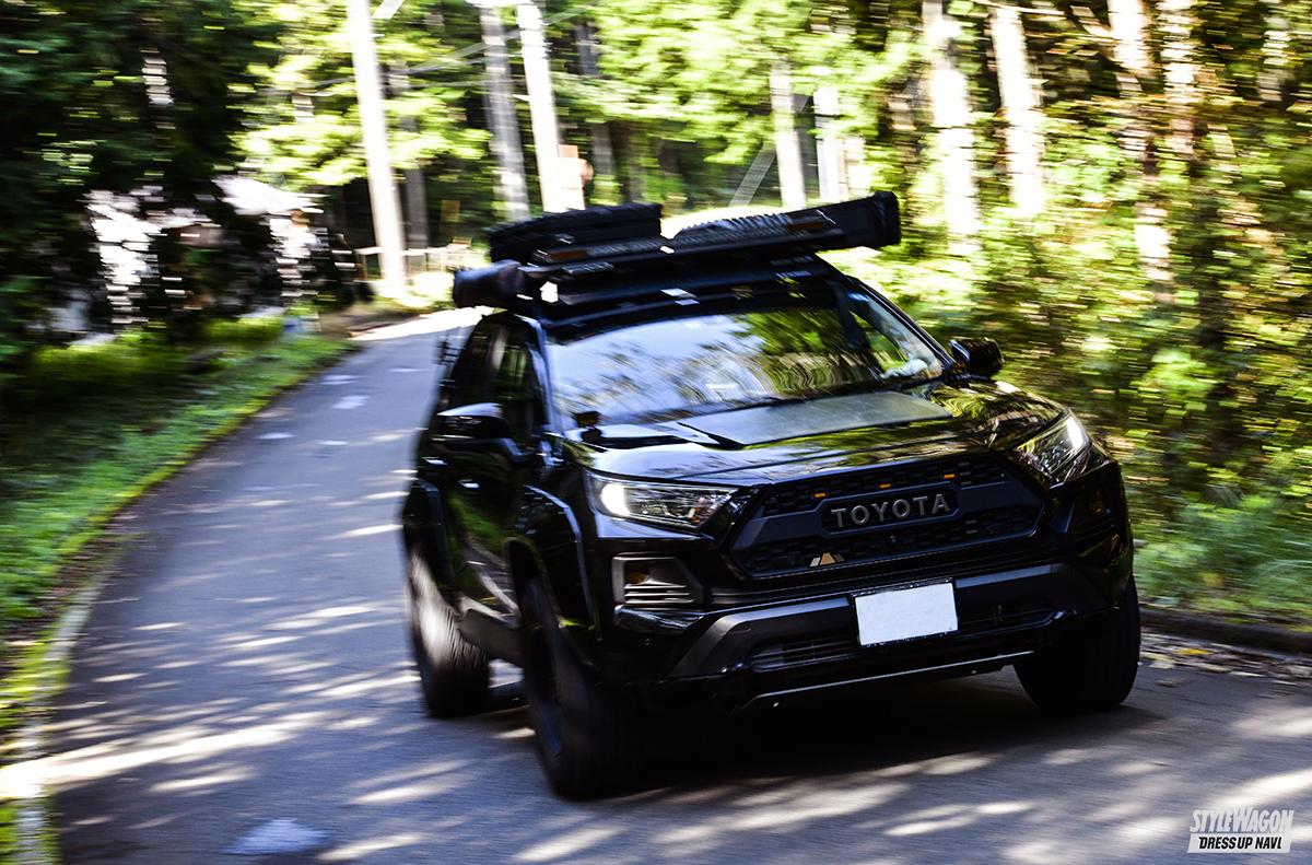 クルマを買ってからカスタマイズはもちろんのこと、流行りのキャンプにも挑戦してみたかった。そこで掲げたイジりのコンセプトは、「クルマから始まるキャンプ」。用品店で必要なギアをすべて揃えなくても、クルマ1台あればどこへ行ってもすべてまかなえる。その想いで理想的なパーツを追加してRAV4の使い勝手を向上させてきた。