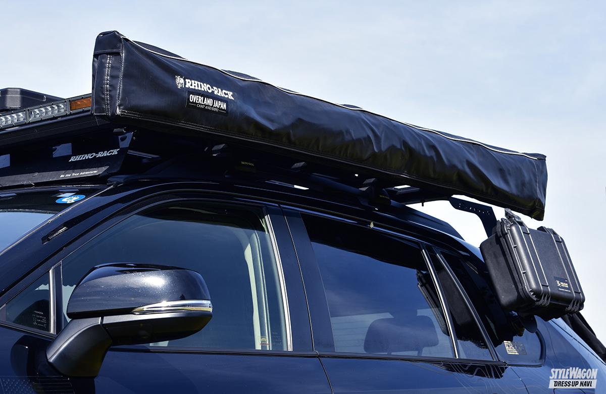 「テントを設営するのも、1時間くらいかかって面倒ですからね。今は諸事情で外していますが、ルーフテントを装着すれば1分くらいで展開できる。サイドオーニングも1人でも5分くらい。目的地に着いたらすぐにお酒を飲みたいので(笑)、設営や撤収が簡単なのがいいですね。キャンプ場じゃなくても、どこへ行っても楽しめます」。