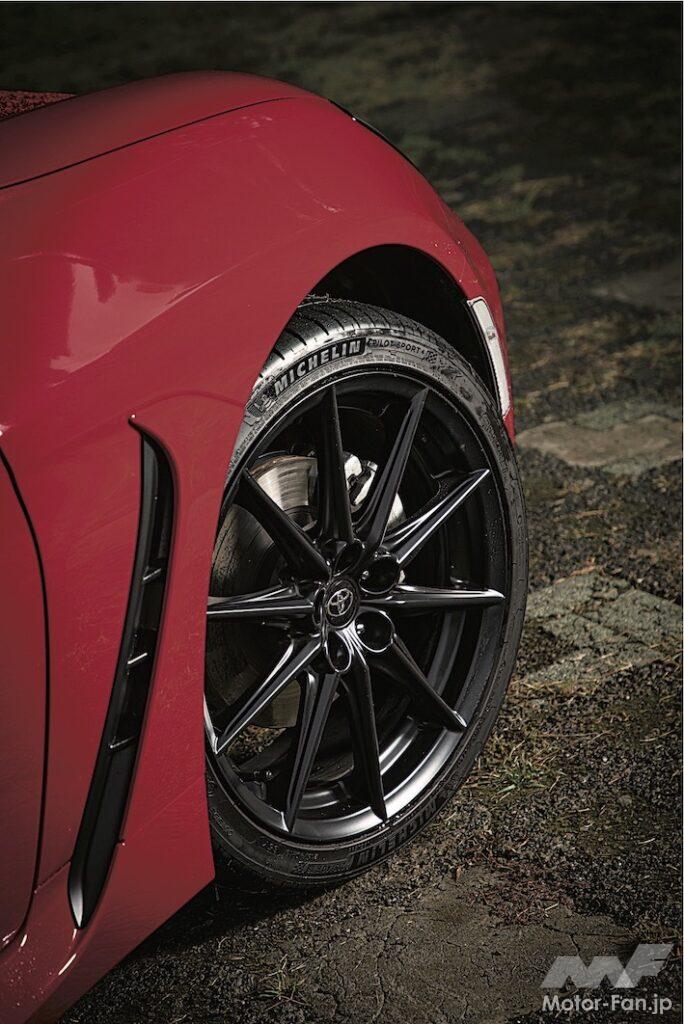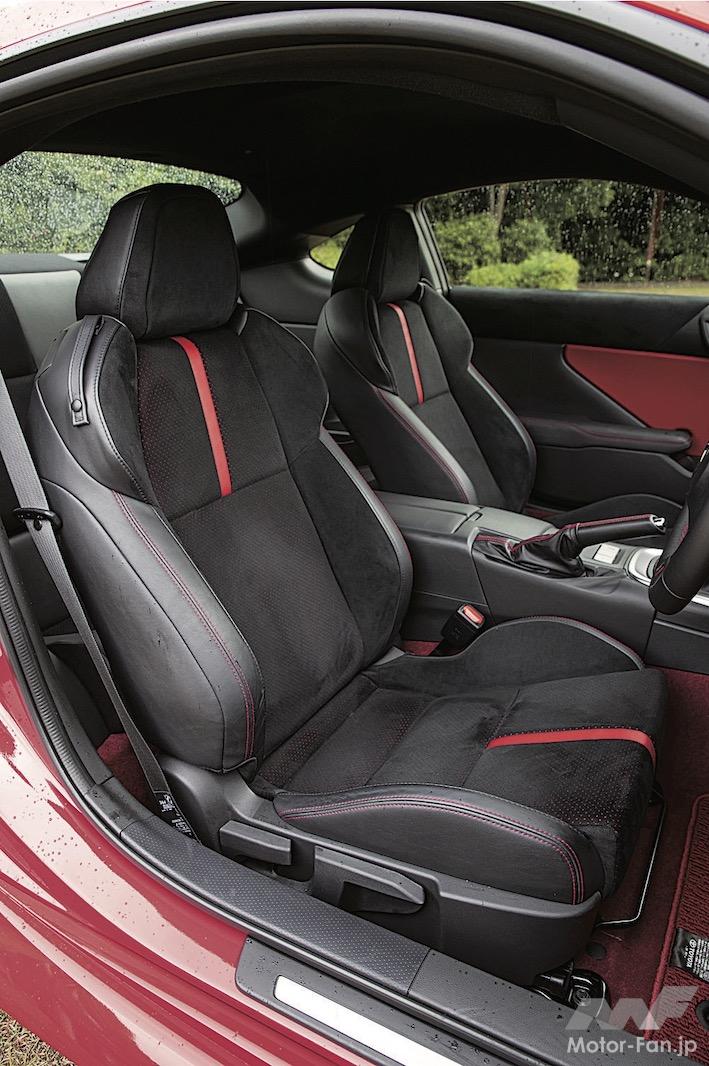 さらに全高を10mm下げ、カップルディスタンスはマイナス7.4mm、ヒップポイントは5mm下げるなど、その手法はレーシングカーをつくっているかのよう。ただし、兄弟車のBRZのようにフロントナックルをアルミ化せず、旧型同様の鋳鉄製としたところは拘りのひとつ。レースに投入したとしても、きちんとした剛性を出したかったという狙いがそこにある。また、フロントスタビライザーについてもGR86は中実でBRZは中空。リヤは取り付け方法も異なり、GRはあえて従来通りの手法を選択。トヨタとスバルが目指す走りの違いが垣間見える部分だ。