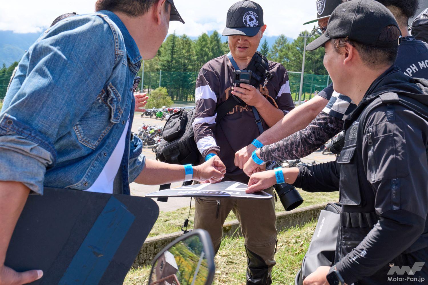 TNRでは皆様との「絆」を生むべく、来場者全員に「TNR2024オリジナルステッカー」や、イベント限定の「トライアンフオリジナルレジャーシート」の配布、参加者が集まっての集合写真。
