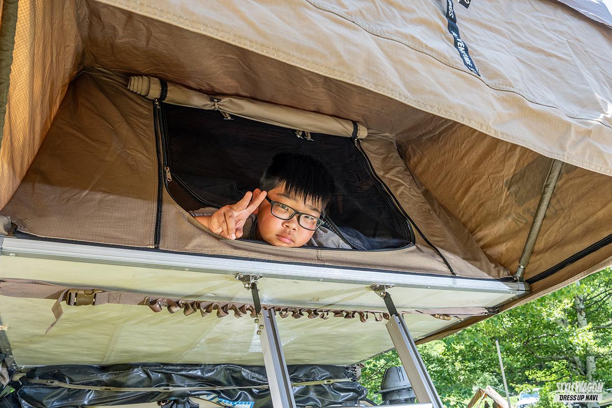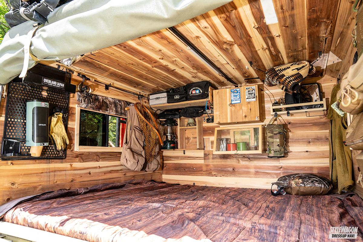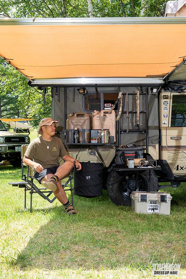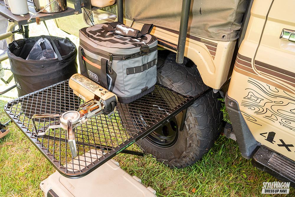 「このクルマで車中泊ができたら便利だなと思ったのがきっかけで、骨組みと幌と特注しました。米軍のランクルも幌を付けていたので、それも参考になりましたね」。