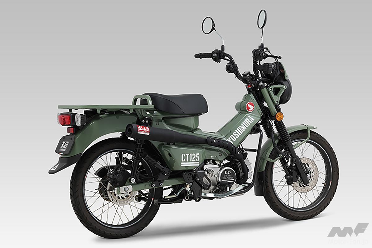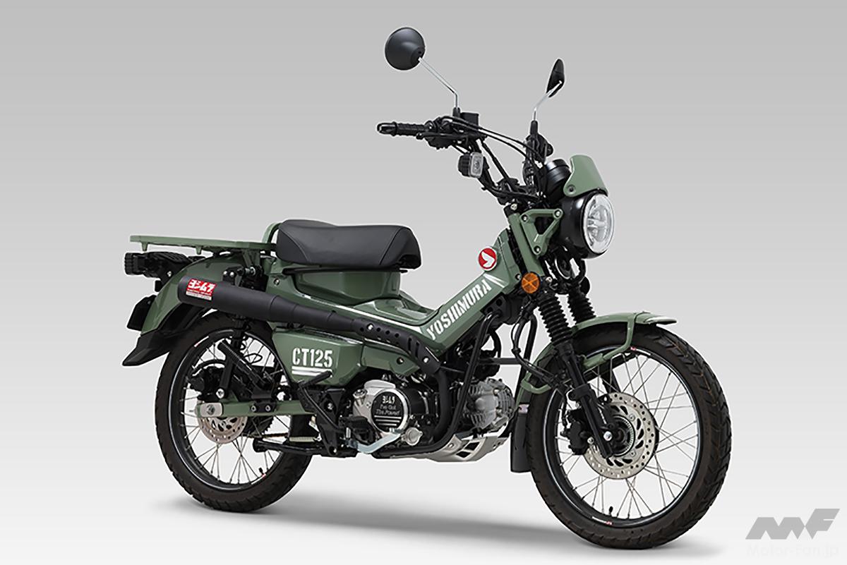 ヨシムラが提案するCT125ハンターカブ、サイクロンマフラーがサバイバル感満点です!ヨシムラは鈴鹿8時間耐久レースを始め、様々なロードレースで活躍する名門のバイクパーツメーカー。ヨシムラが手掛けるカスタムは、レーシングスピリッツを投影したレーシーなカスタムが多いのが特徴。しかし写真のホンダ・CT125ハンターカブ改は、レーシーに仕上げるのではなく、昨今のアウトドア&キャプブームを意識した、「CT125ハンターカブらしさ」を追求しているのがポイントだ。 PHOTO●山田俊輔(YAMADA Shunsuke) REPORT●北 秀昭(KITA Hideaki) ヨシムラジャパン https://www.yoshimura-jp.com/ ※2022.04.22 記事内の間違い部分を修正しました。