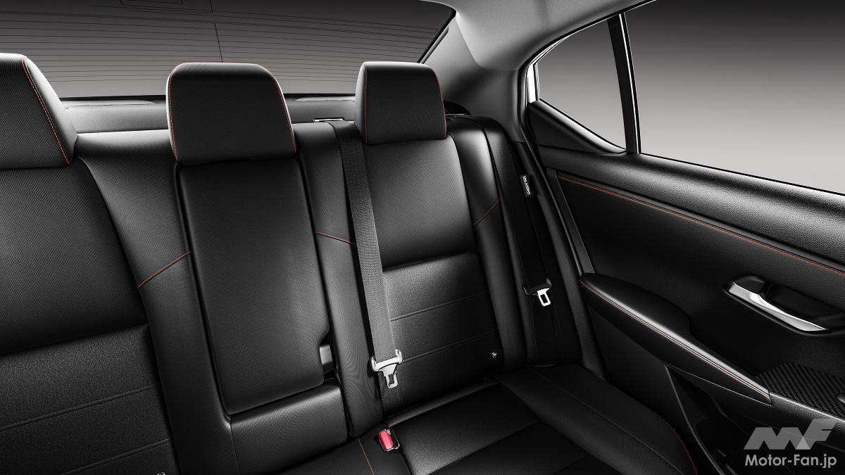 2023年型のセントラは、人目を引くデザインに加えて、クラストップレベルの安全装備である「ニッサン・セーフティシールド 360」を全車に標準装備し、安心感を訴求している。さらに、クラス独自の「インテリジェント前方衝突警報」も標準装備している。また、燃費は最高16.6km/Lと経済的にも優れている。