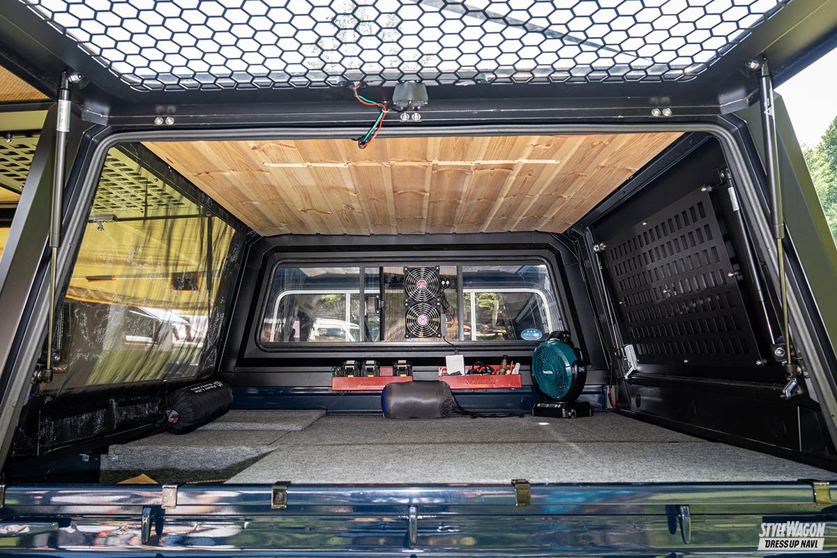 「以前はランクル77に乗っていたのですが、トラックが出たときにいいなと思っていたんです。そのときは購入しなかったのですが、4年くらい経って手が出せるところまで価格が下がってきたので思い切って乗り換えました」。ランクル79との出会いをそう口にしてくれたkiyo79さん。キャンプは行き当たりばったりの野営スタイルが多いそうで、そういった状況にも対応できるようにとキャノピーをはじめ、様々なパーツを取り入れている。その中でもお気に入りのアウトドアギアは、ガス仕様のファイヤーピットやナンガの寝袋、プライムスのガスランタン、ベアボーンズのエジソンストリングライトなのだが、寝袋に至っては季節によって使い分けられるようにとダウン量が異なるものを持つなど強いこだわりを持っている。