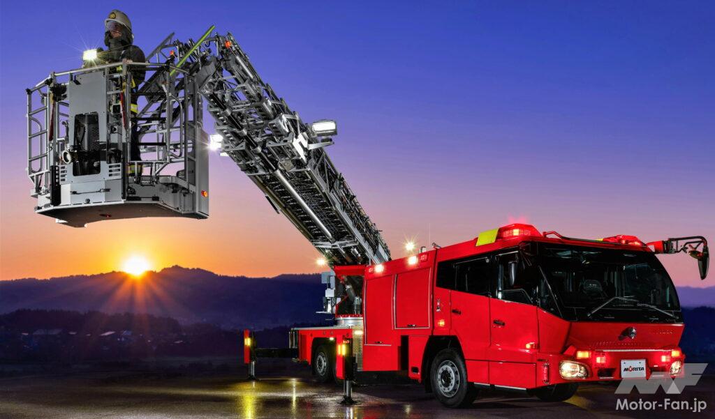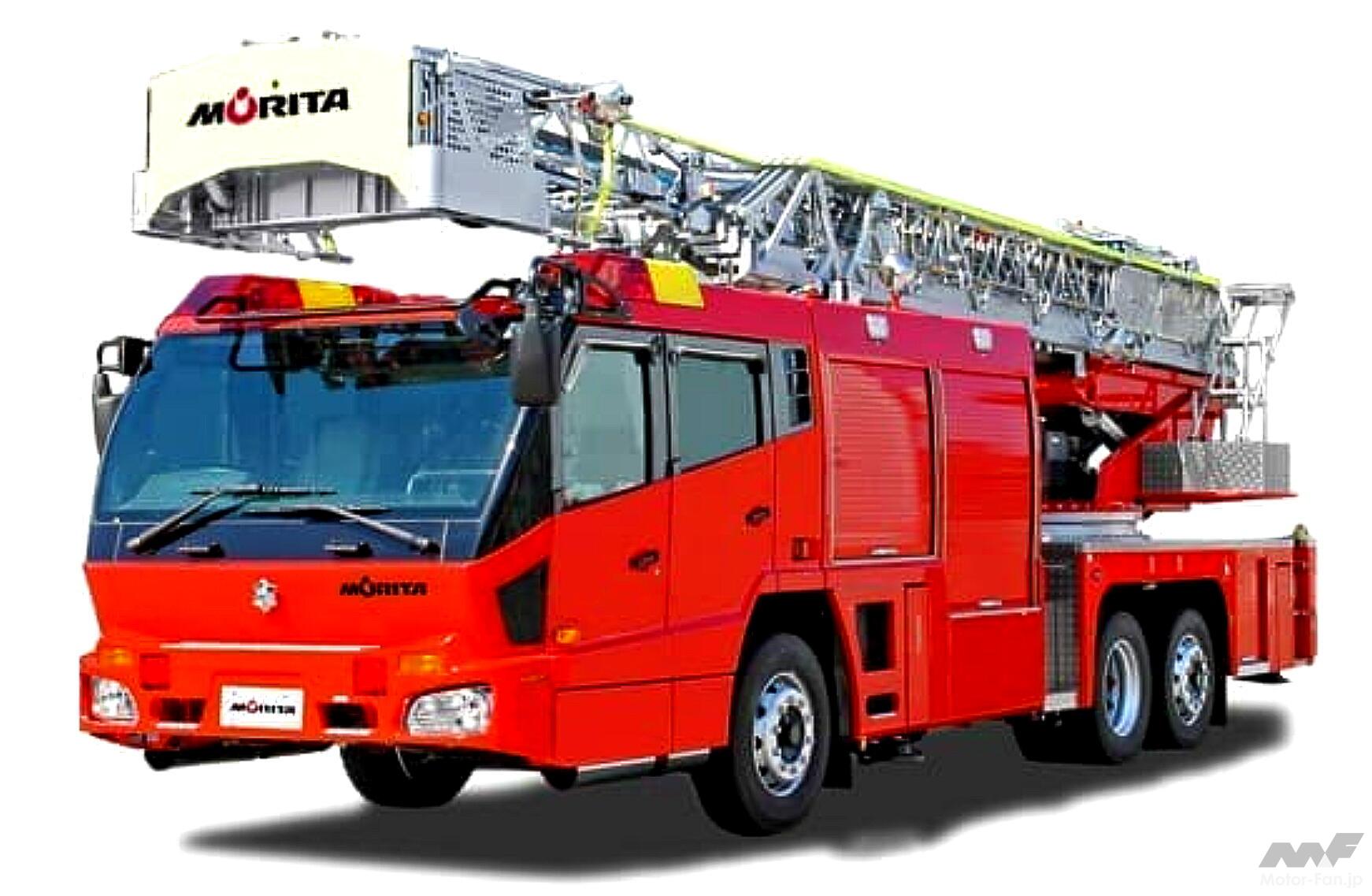 これらのはしご車で日本国内で最も多数を占めているのが株式会社モリタホールディングス(以下、モリタ)の製造する車両です。一般にトラックは、自動車メーカーの製造するトラックの車体に、設備や装備専門のメーカーがそれらを装備することでオーダーメイドで作られます。トラックに搭載する設備や装備を開発・製造し、トラックの車体に取り付けるメーカーのことを架装メーカーと言いますが、消防車の代表的な架装メーカーにひとつがモリタです。