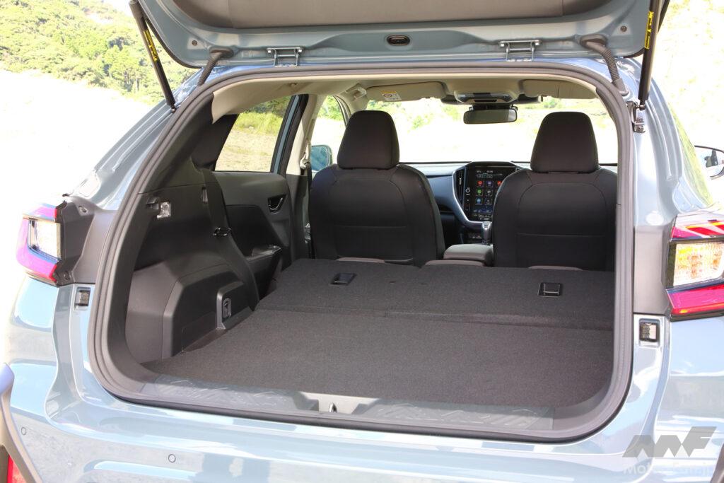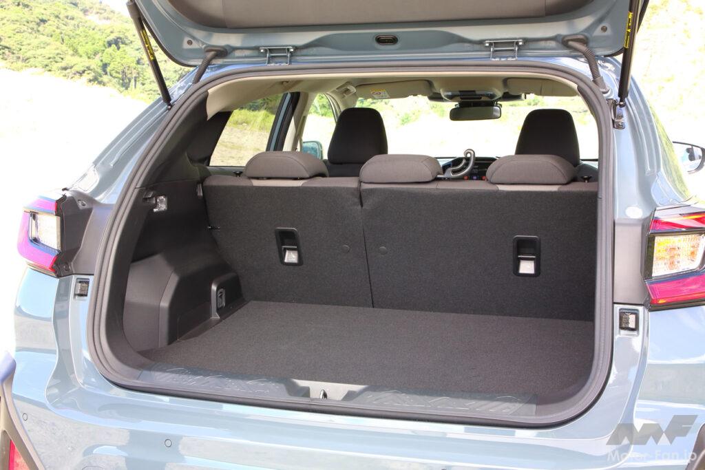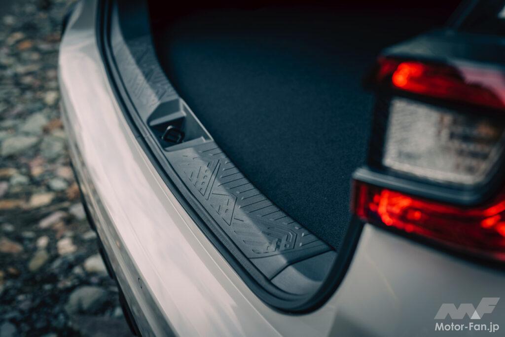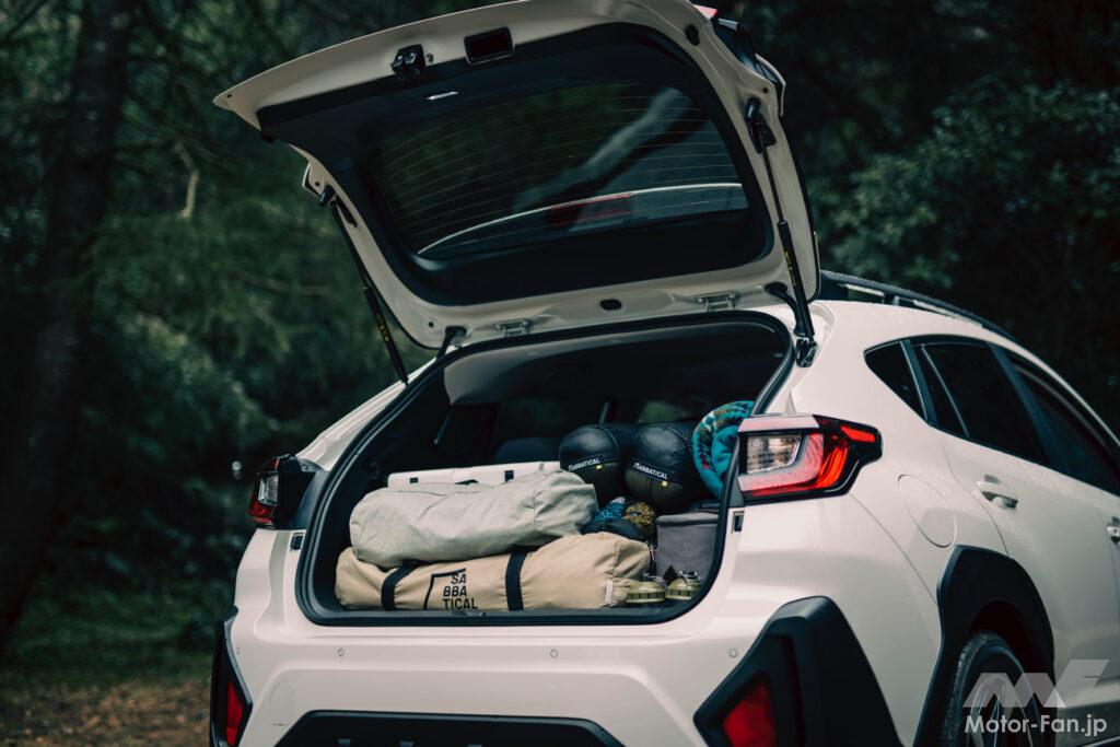 ルーフラインとリヤゲートを先代のSUBARU XVよりも傾斜させてよりスポーティなスタイリングとしながらも、積載能力は同等をキープ。さらにルーフ部へのアクセス性を高めるステップを後部ドア開口部に新設した。これによりキャリアやルーフボックスなどの装着時の積載物へのアクセス性を高めるだけでなく、洗車時のルーフ部の拭き上げも楽になった。