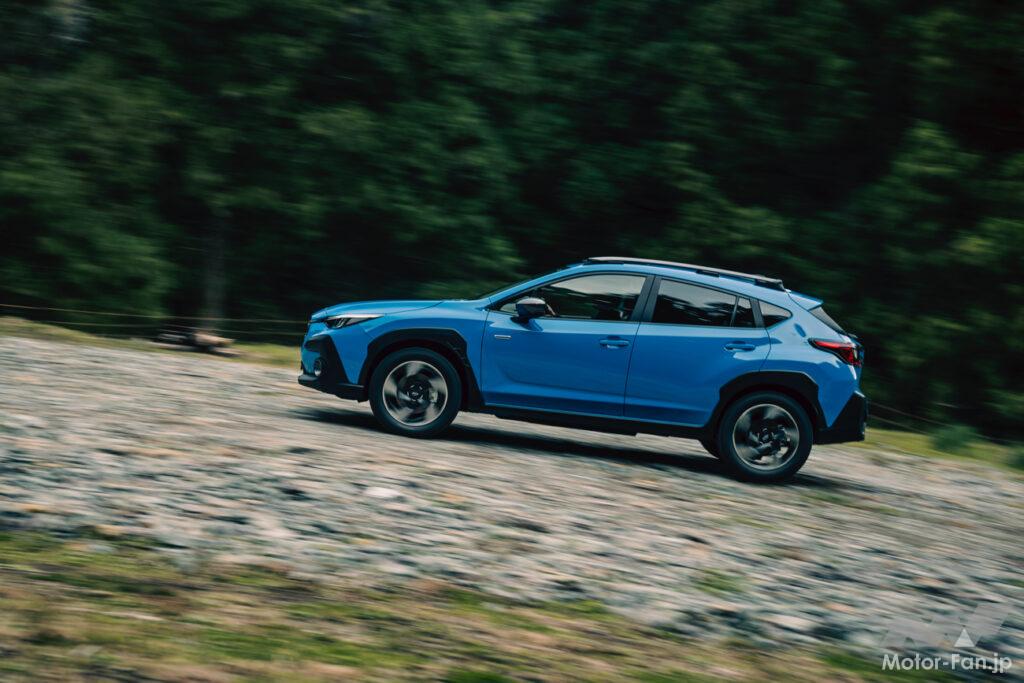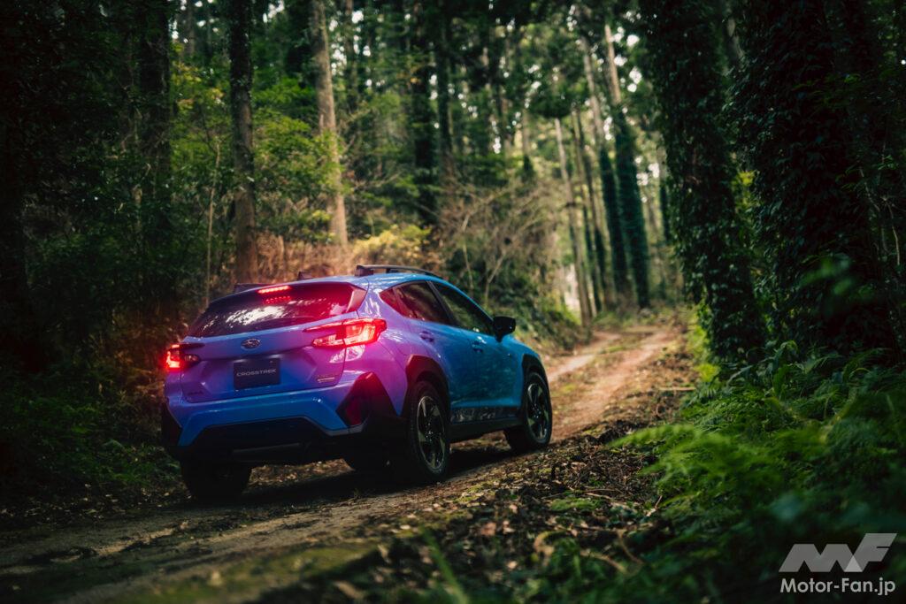 新型クロストレックの持ち味は、街中でも扱いやすいコンパクトなボディとSUVに求められる高い走破性の融合にある。SUVとしては低いスタイリングは、軽快な走りを連想させるだけでなく、親しみやすいキャラクターにも繋がるもの。