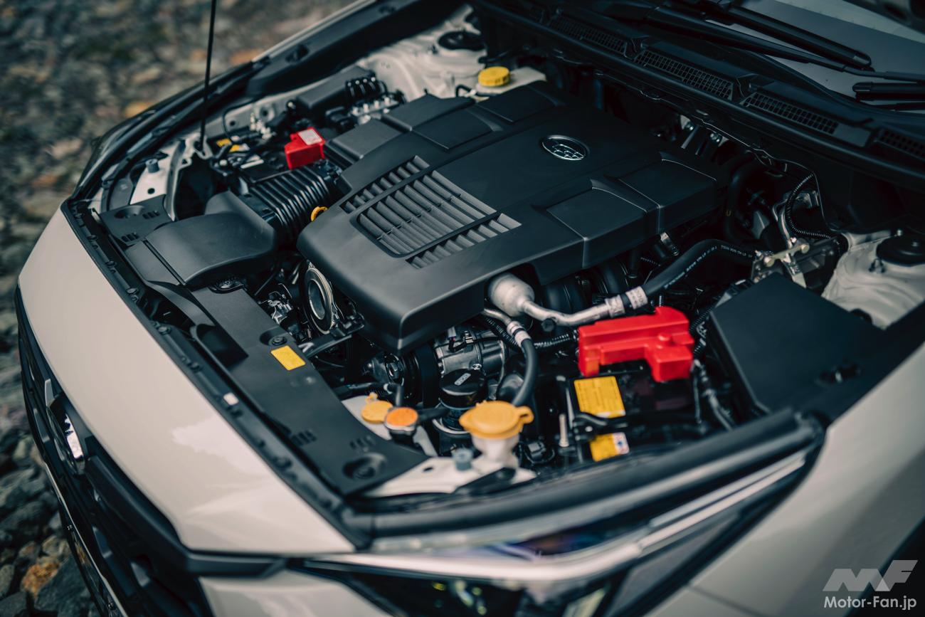 AWDとFWDという駆動方式の違い以外は、エンジンやトランスミッションなどのメカニズムは基本的に全車共通となっている。ドライブトレーンはハイブリッドのe-BOXER、トランスミッションはCVTのリニアトロニックのみだ。