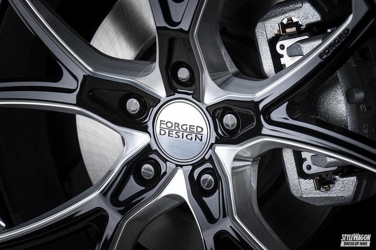 エムズスピードのホイールブランドでフラッグシップの地位に君臨するフォージドデザイン。その本懐は、剛性や軽量性はもちろんだが、それ以上に鍛造製法でしか表現できないビジュアル性を追求すること。プレミアム度の高さとデザインの美しさを徹底的に追求するために鍛造製法を採用するブランドなのだ。