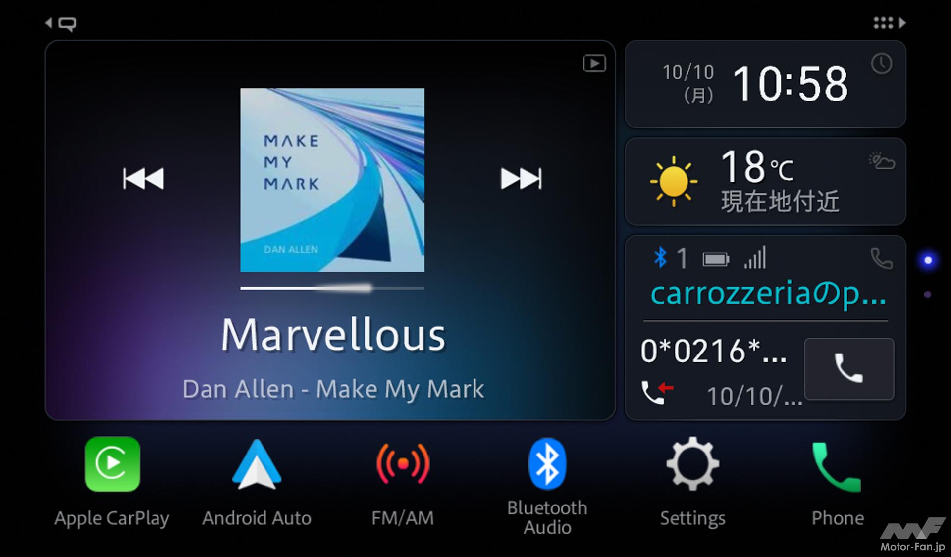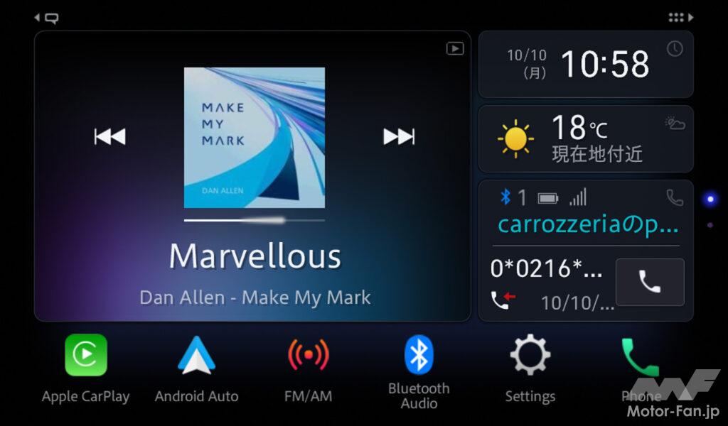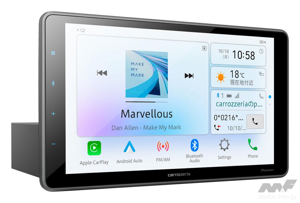 パイオニアから3月に発売予定、カロッツェリアブランドの新製品「DMH-SF500」は、9インチ大画面が魅力のディスプレーオーディオだ。本体部分を1DINサイズ(幅180㎜×高さ50㎜)のスペースに設置し、ディスプレイ部分をフローティング構造にすることで、幅広い車種に対応し大画面を実現してる。また、スマートフォンとの連携は、Apple CarPlay、Android Autoだけでなく「WebLink」にも対応した国内初のモデルだ。