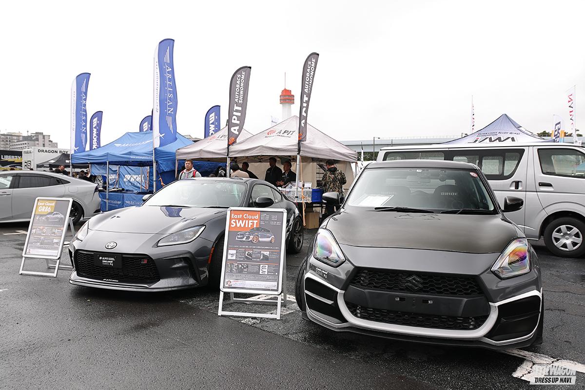 ニュースでご存知の方も多いと思うが、11日は強風のため展示(無料のブース部分)がキャンセルされた(D1と試乗会は開催)。翌日もその影響が危惧されたが、蓋を開けてみると来場者多数! 大勢のクルマ好きが足を運んだのだ。D1(コチラは有料)が併催されていたこともあり、ややスポーツ寄りの展示をするメーカーが多い印象で、アチラ側から流れてくる派手な音、立ち上るスモークは迫力満点。展示エリアでもこの日、本邦初公開のデモカーがあるなど、見どころ満点だったのだ。