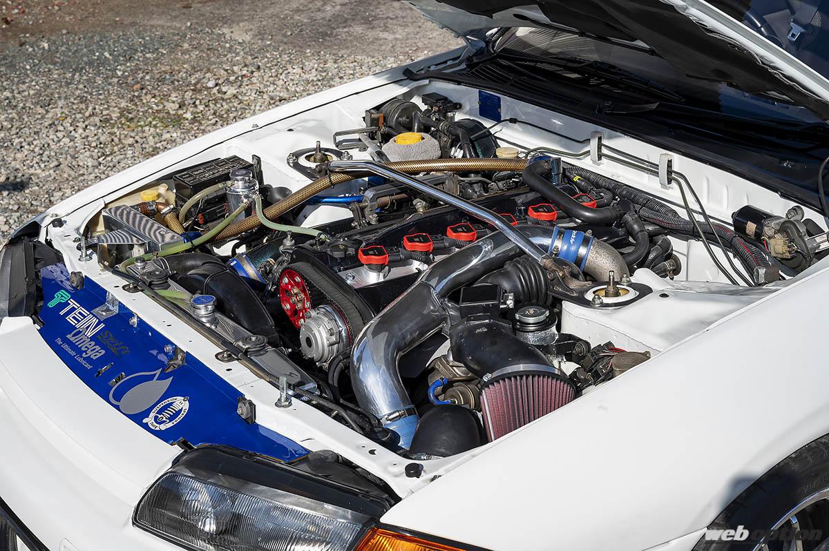 腰下はHKSの3.4Lキャパシティアップグレードキットで排気量を底上げ。そこにブライアンクロワーの276度ハイカムやG35タービン、レクサス用74φ電子制御スロットルなどを投入しながらパフォーマンスを高めている。