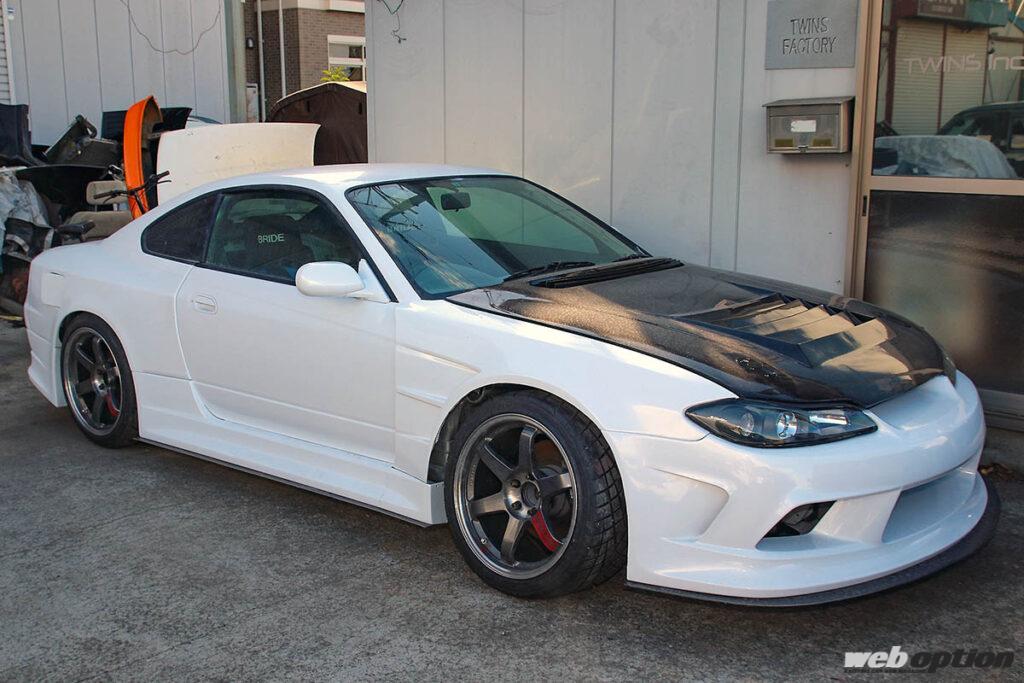 このS15シルビアは、競技ドリフト仕様としてツインズが製作したチューンド。エンジンは2JZの腰下に1JZのヘッドを組み合わせた通称“1.5JZ”で、パイピングから配線関係のワイヤリングまで徹底追求。ショーカーレベルのエンジンベイを実現しているのだ。
