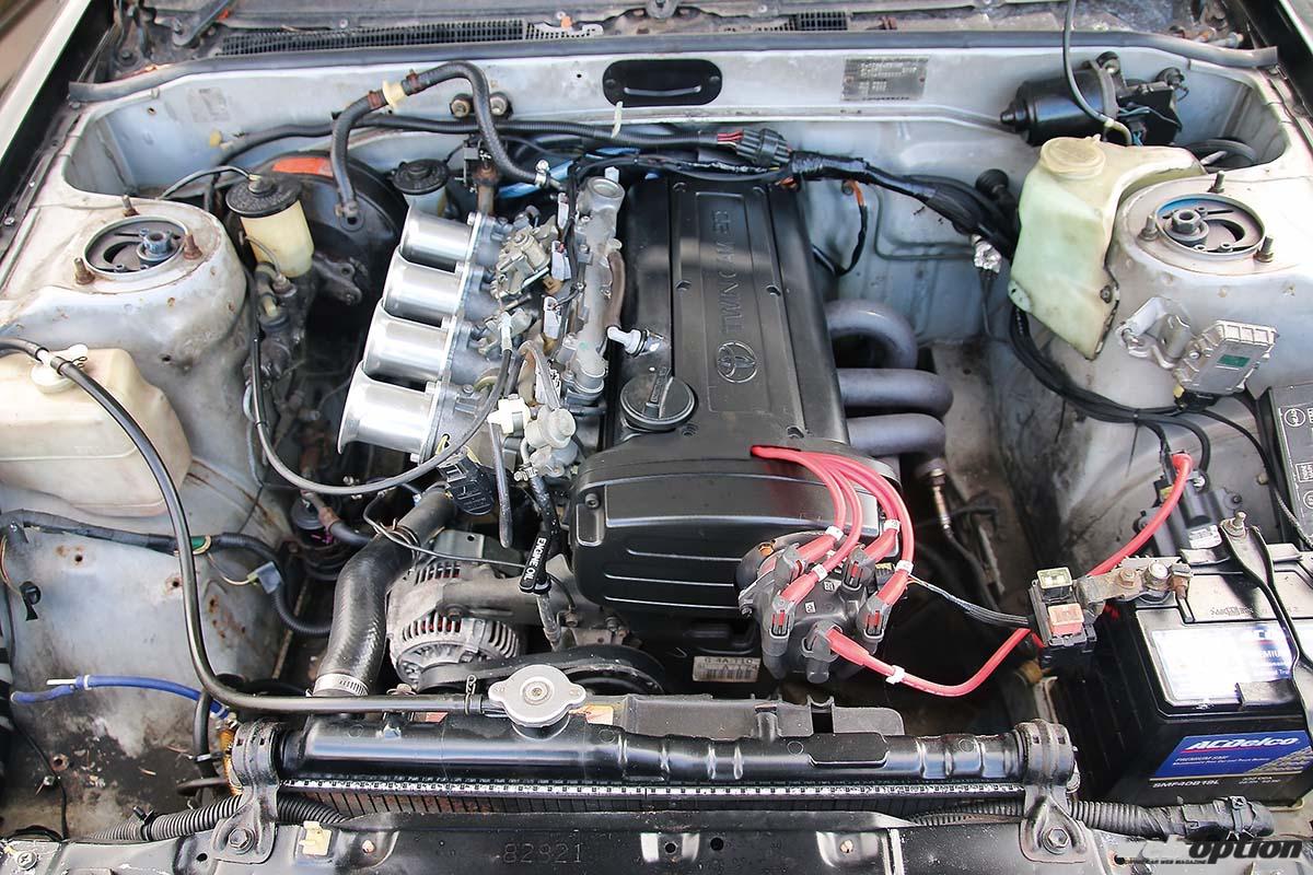 こちらは、AE92後期をベースにしたスポーツインジェクション仕様のAE86。低予算でエンジンルームをスッキリさせるべく、アルミパネルを駆使した独自のブラインド仕様を構築している。